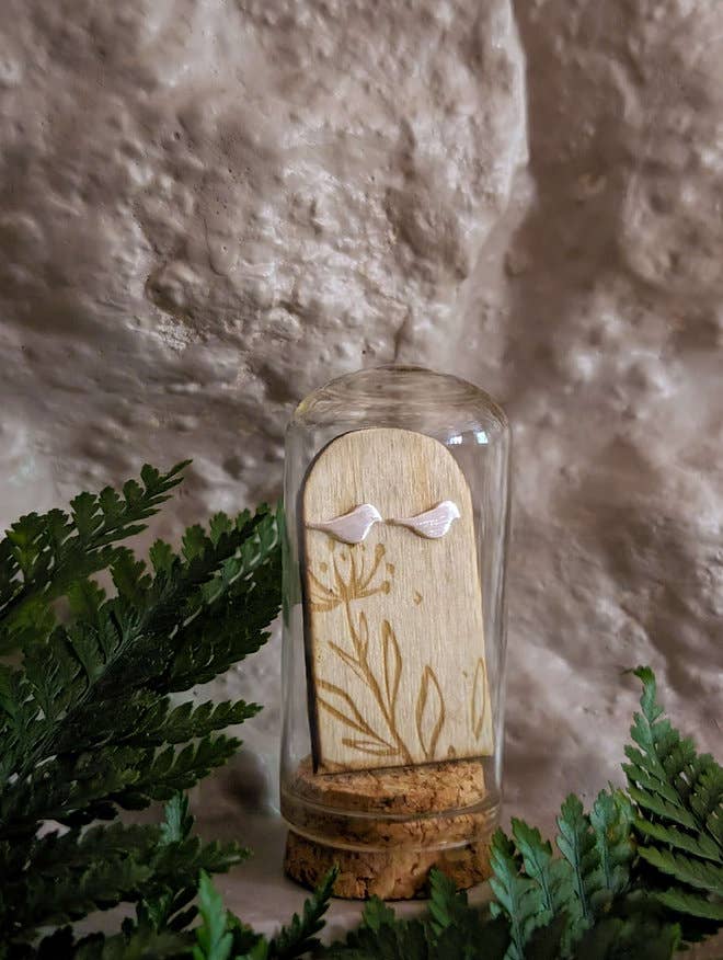 Bird Sterling Silver Studs in Glass Terrarium Tube