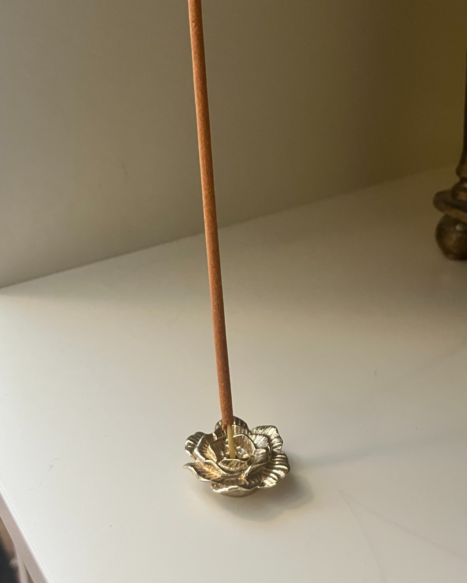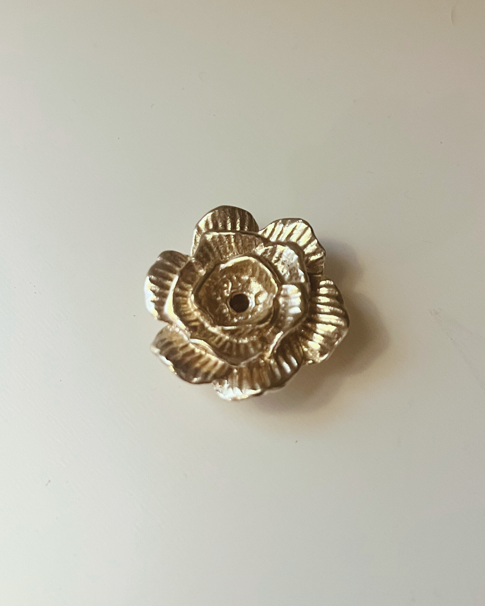 A brass rose flower incense holder burner for incense sticks. Part of our curiosities collection of burners these are such wonderful additions to everyones rituals and altars.
