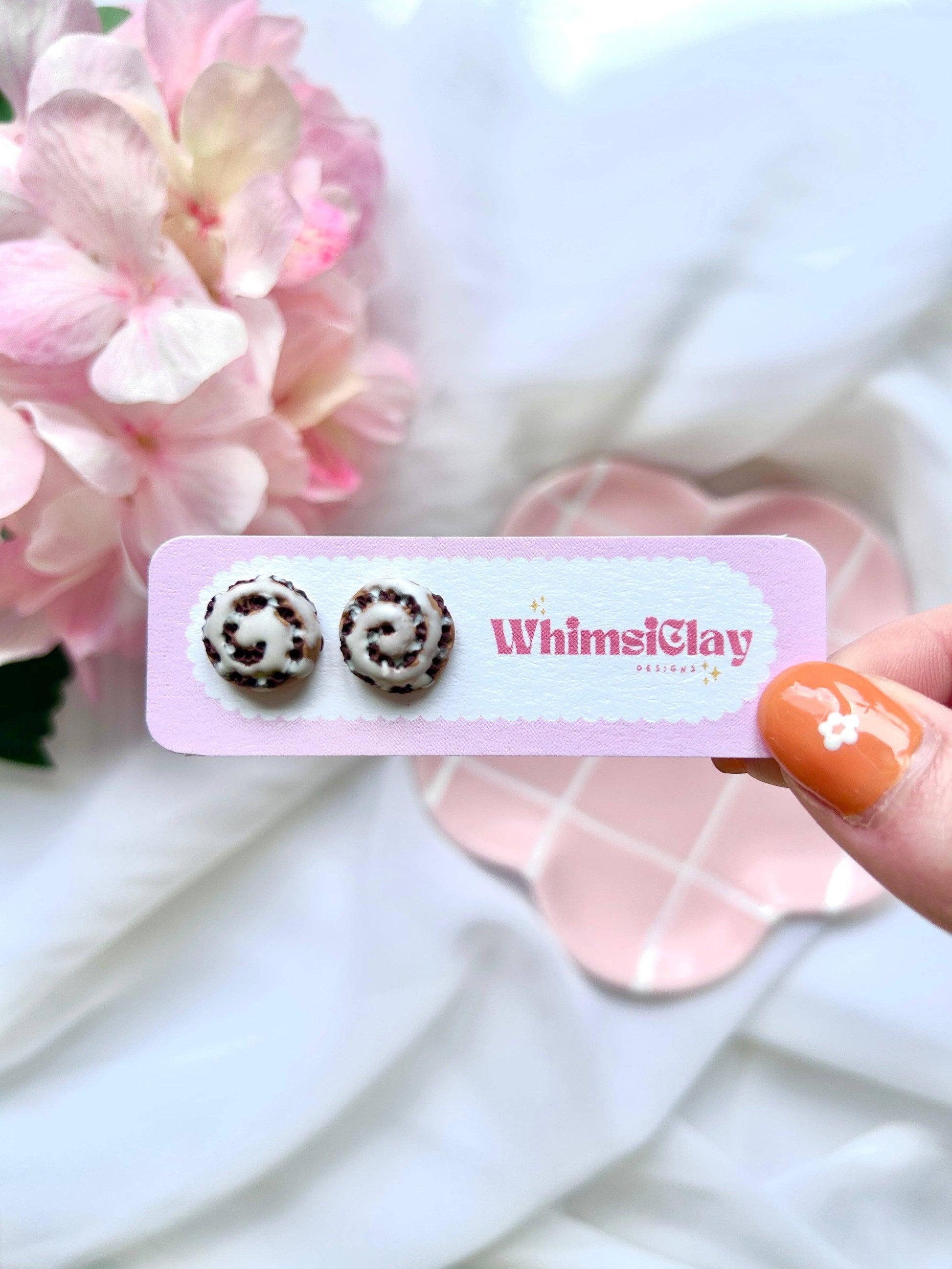 Cinnamon swirl stud earrings made with polymer clay and so cute and light to wear!