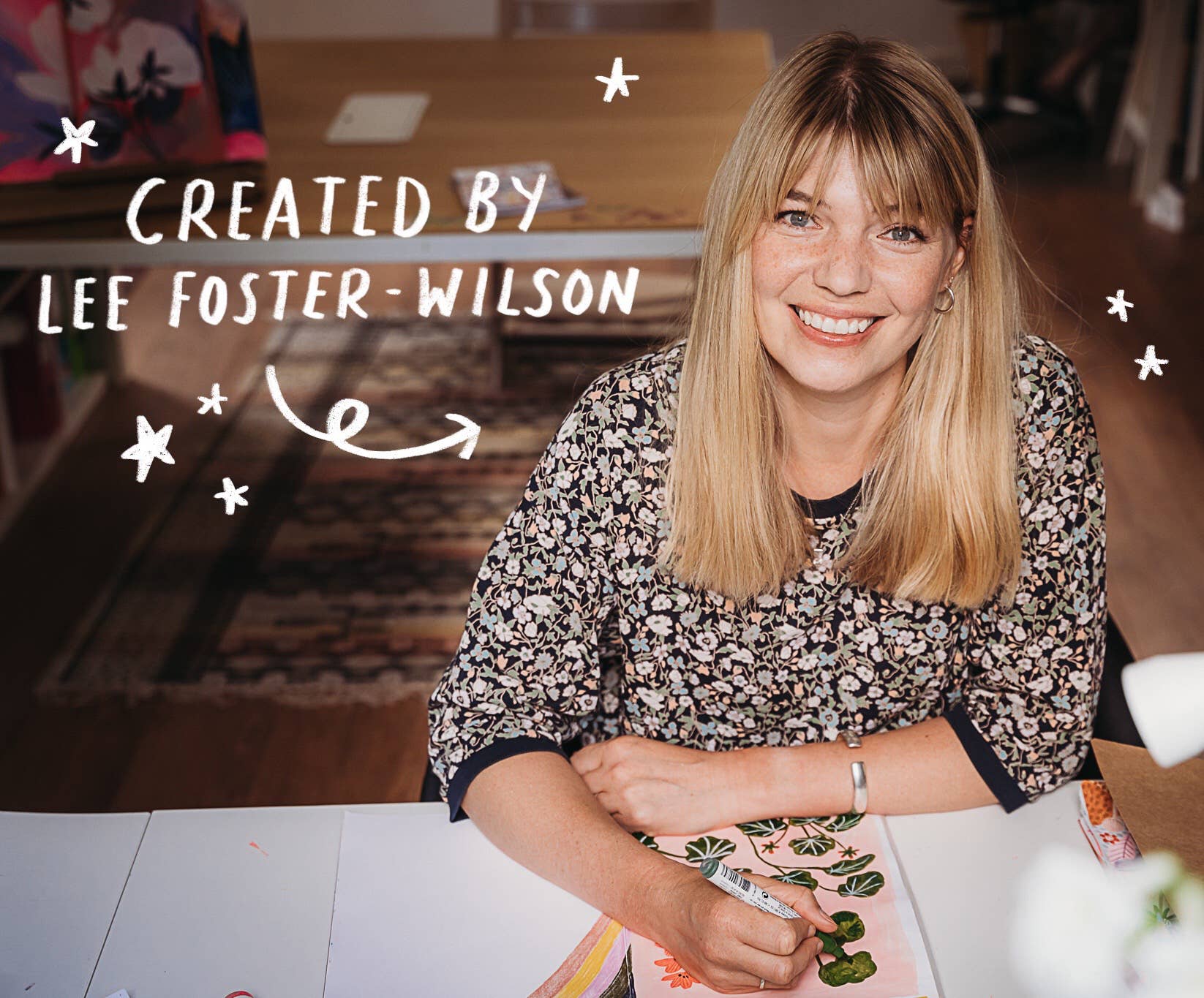 This print is a reproduction of original art by Lee Foster-Wilson which was painted and drawn in mixed media on paper.