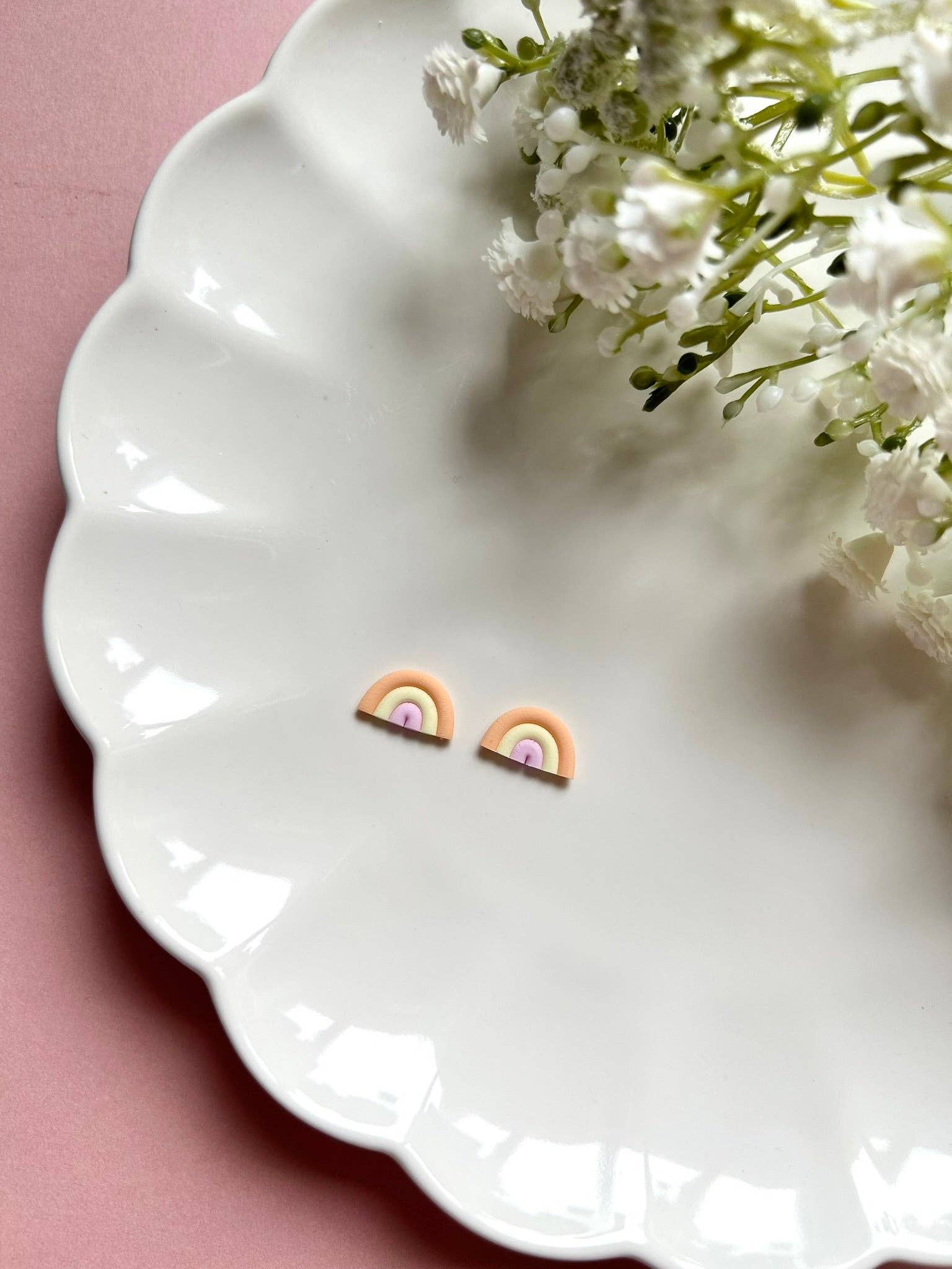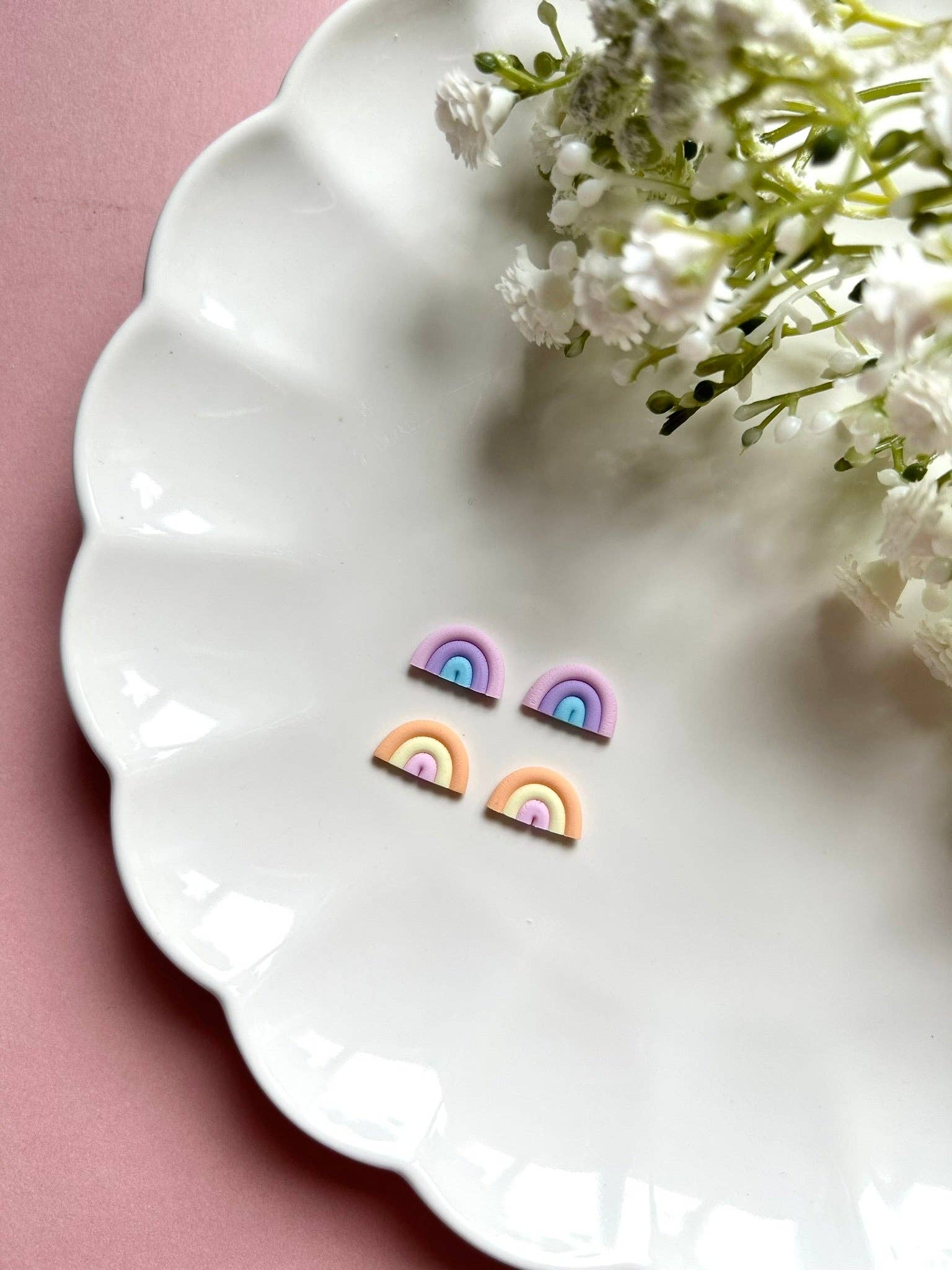 Colourful rainbow stud earrings made with polymer clay and so cute and light to wear!