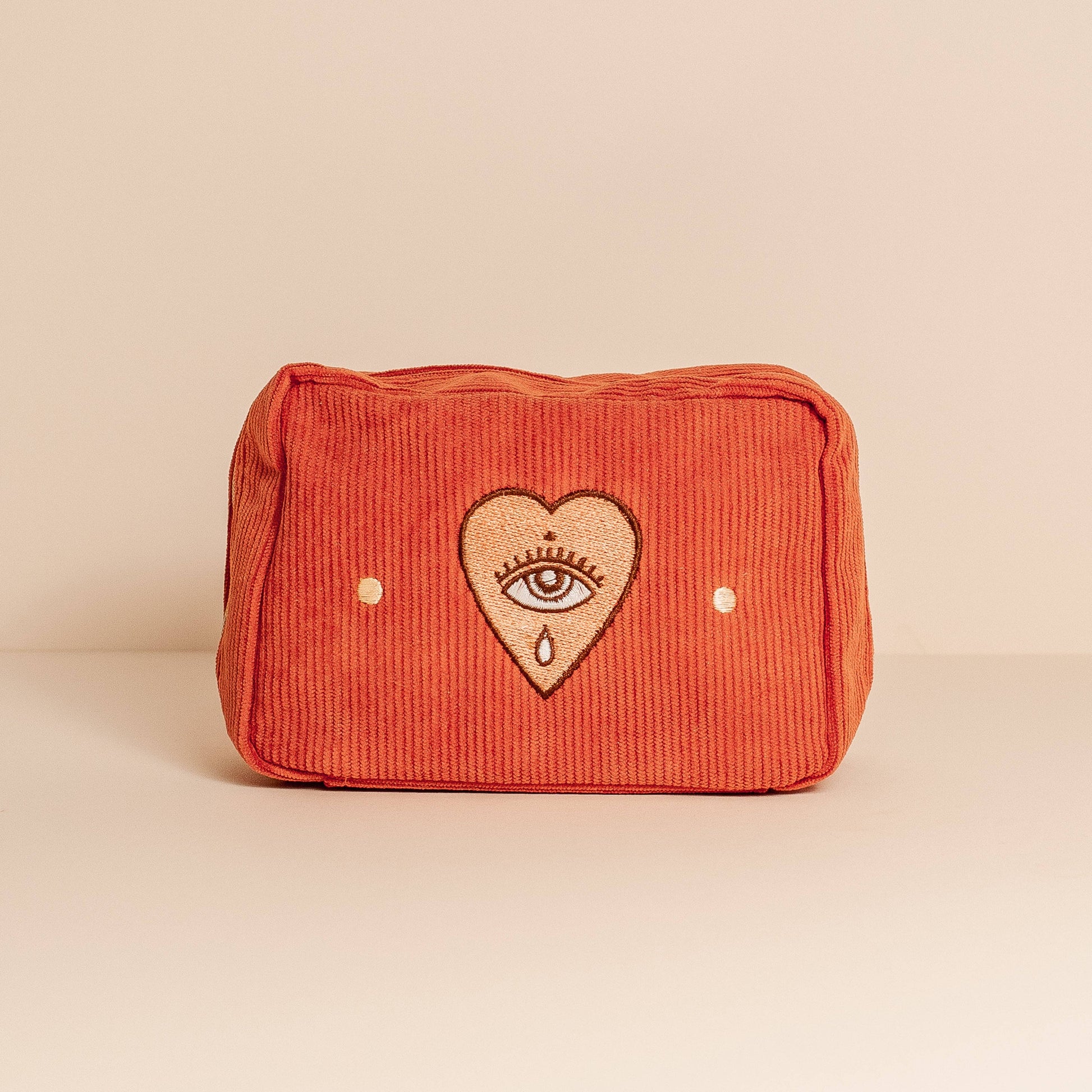 Keep your essentials organised wherever you go with this compact make up bag. Embroidered with a Milagros inspired heart design, this bag includes internal pockets to keep everything neat, and is completed with a double zip fastening