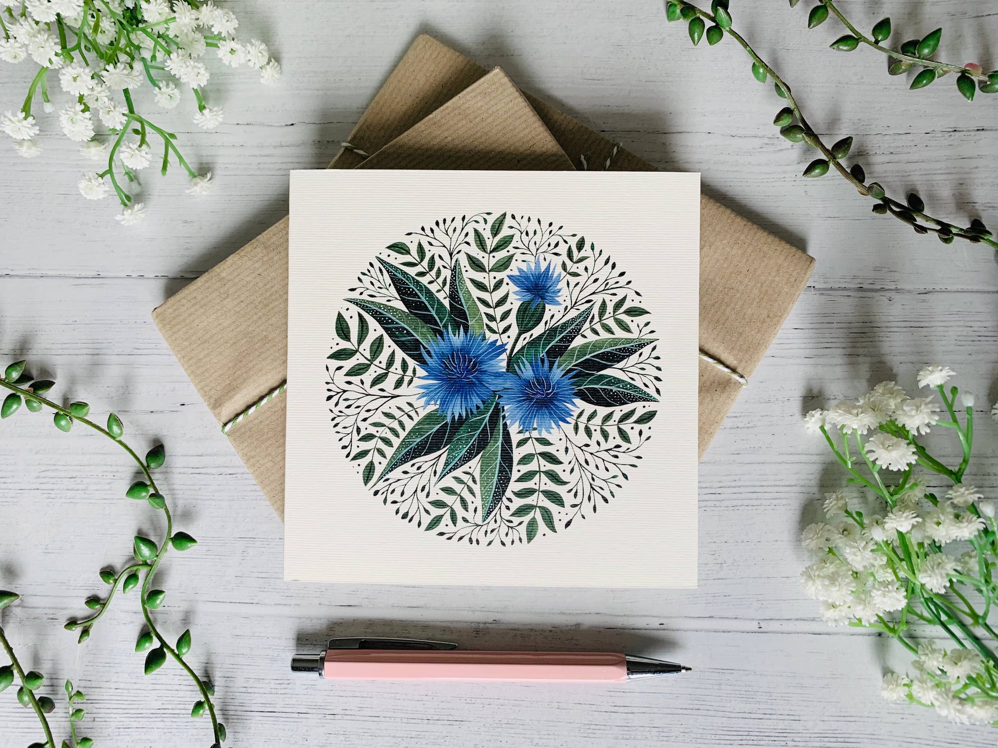 Luxury square greeting card, printed in the UK on textured Aquerello paper. Each card comes packaged with a Kraft paper envelope and a compostable cellophane sleeve. Blank inside.