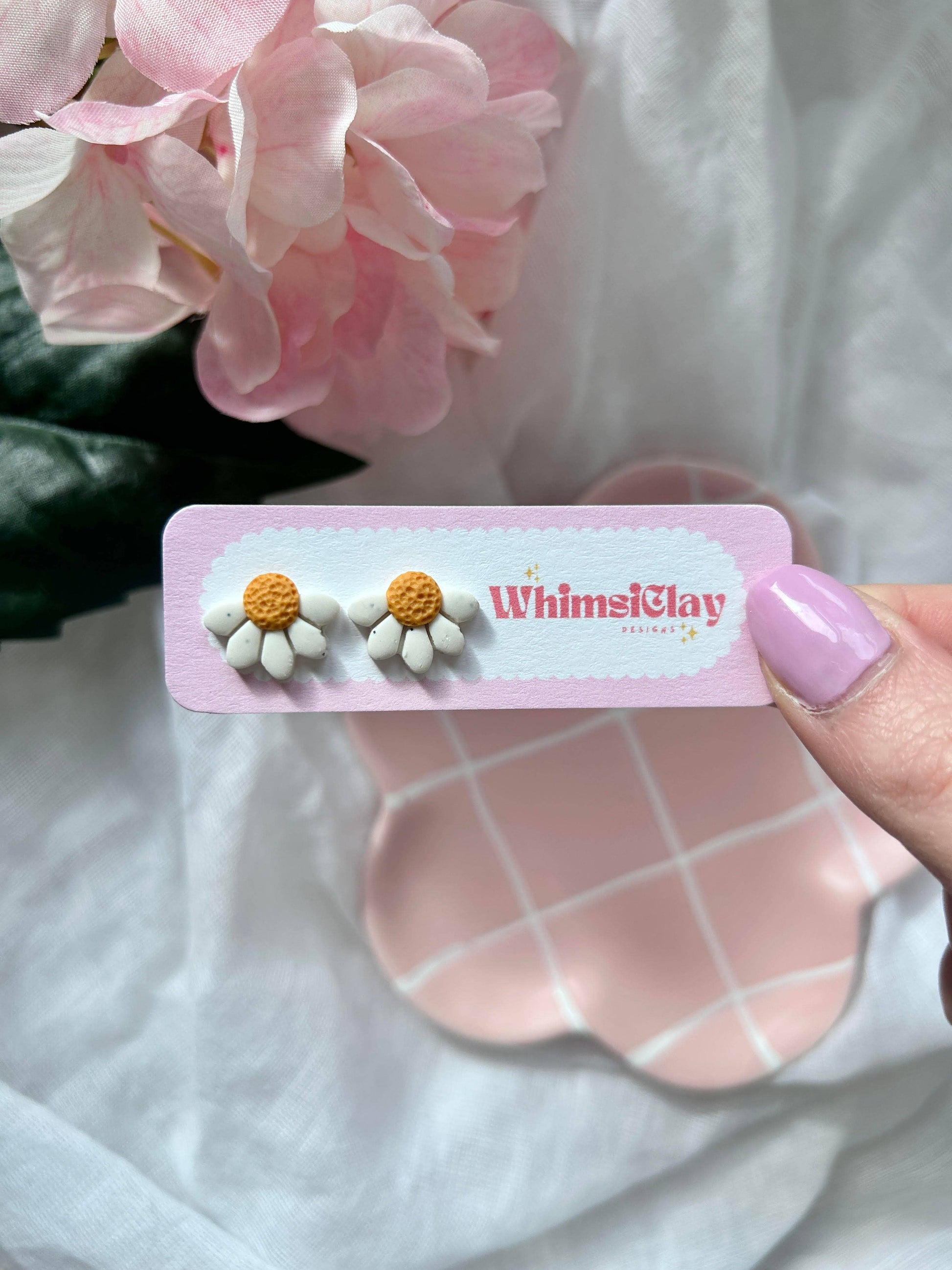 Daisy stud earrings made with polymer clay and so cute and light to wear!