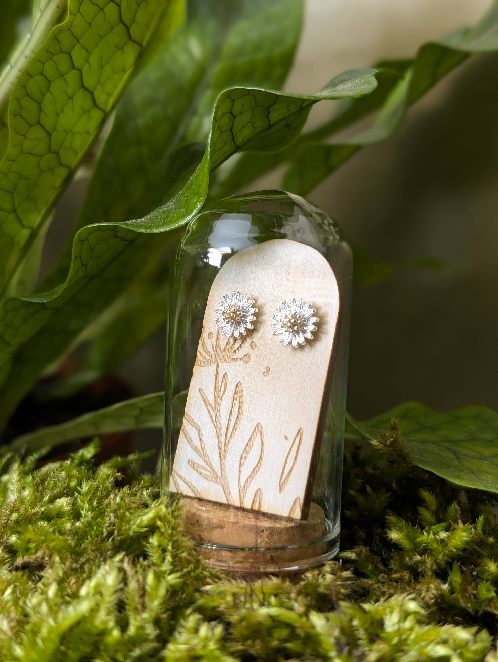 Daisy Sterling Silver Studs in Glass Terrarium Tube