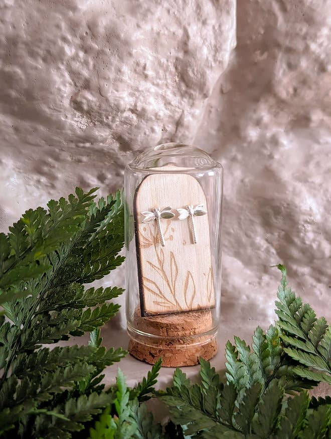 Dragonfly Sterling Silver Studs in Glass Terrarium Tube