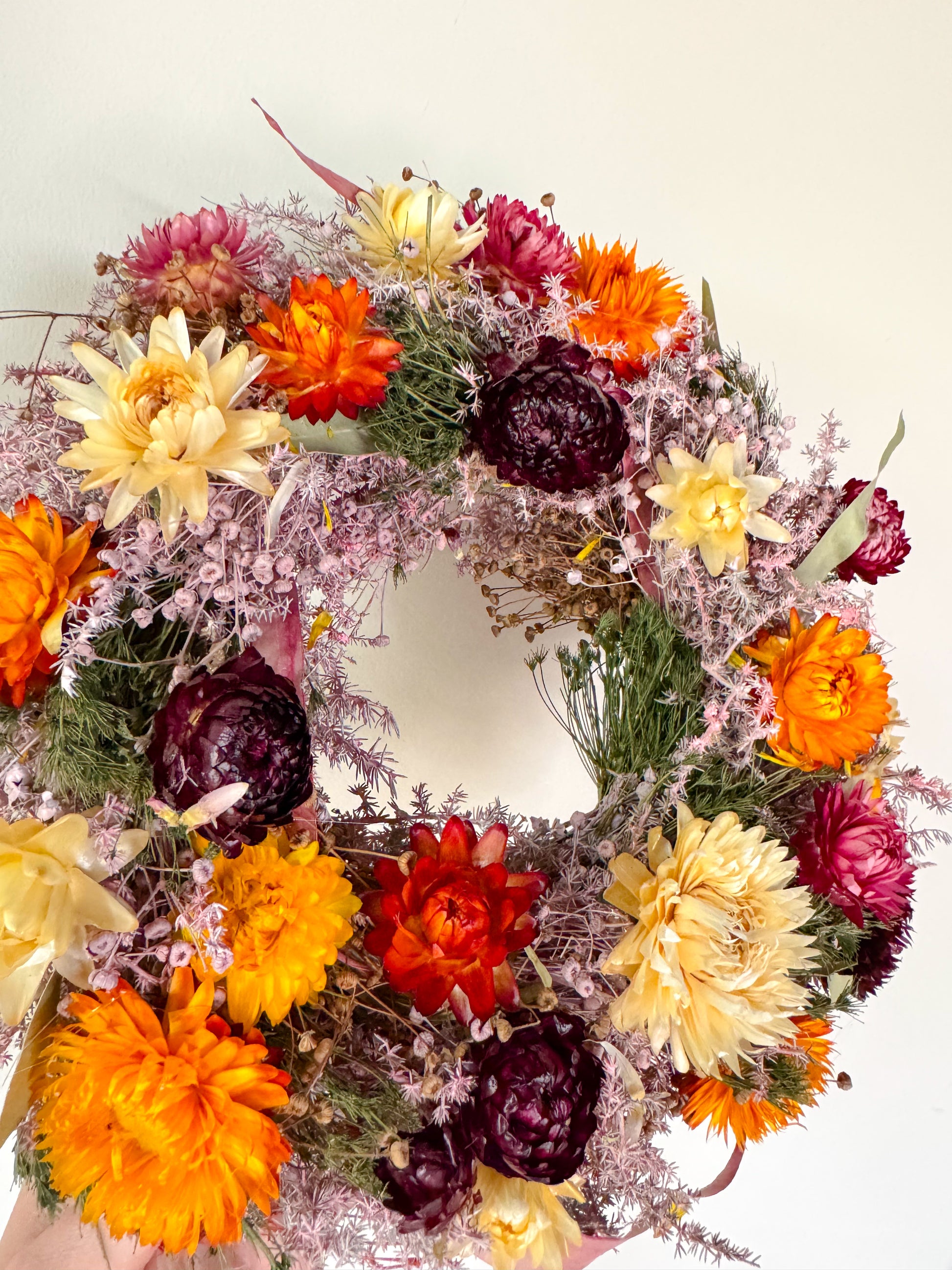 Dried Flowers Wreath - Rainbow Mix 25cm