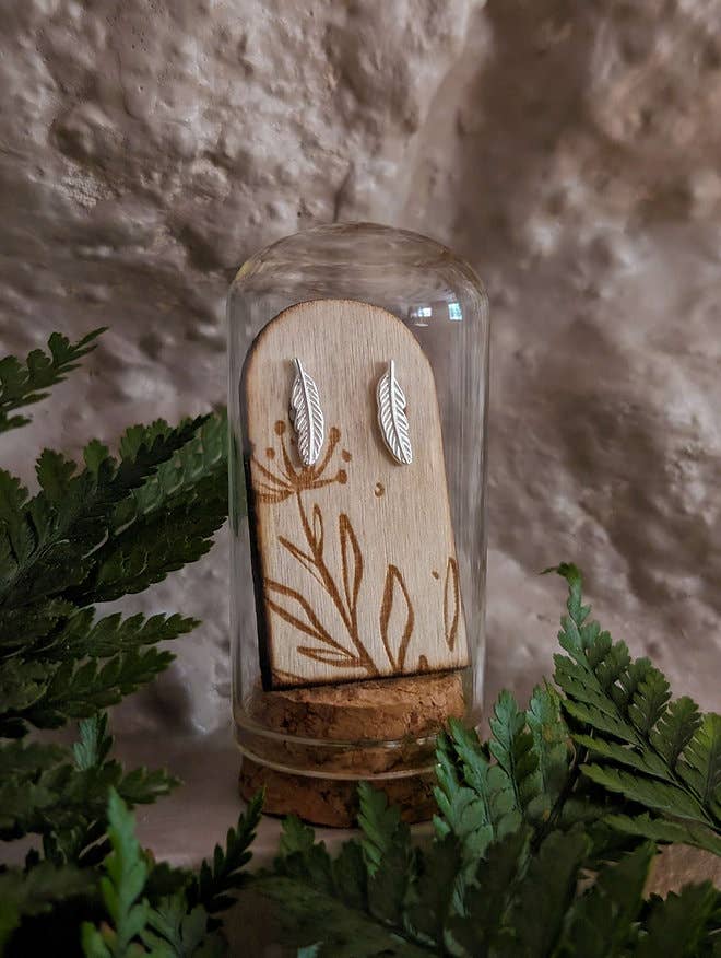 Feather Sterling Silver Studs in Glass Terrarium Tube