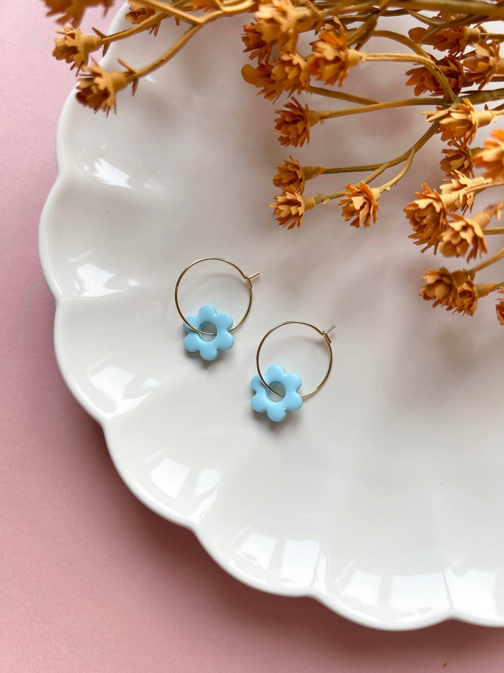 Colourful flower hoop earrings made with polymer clay and so cute and light to wear!