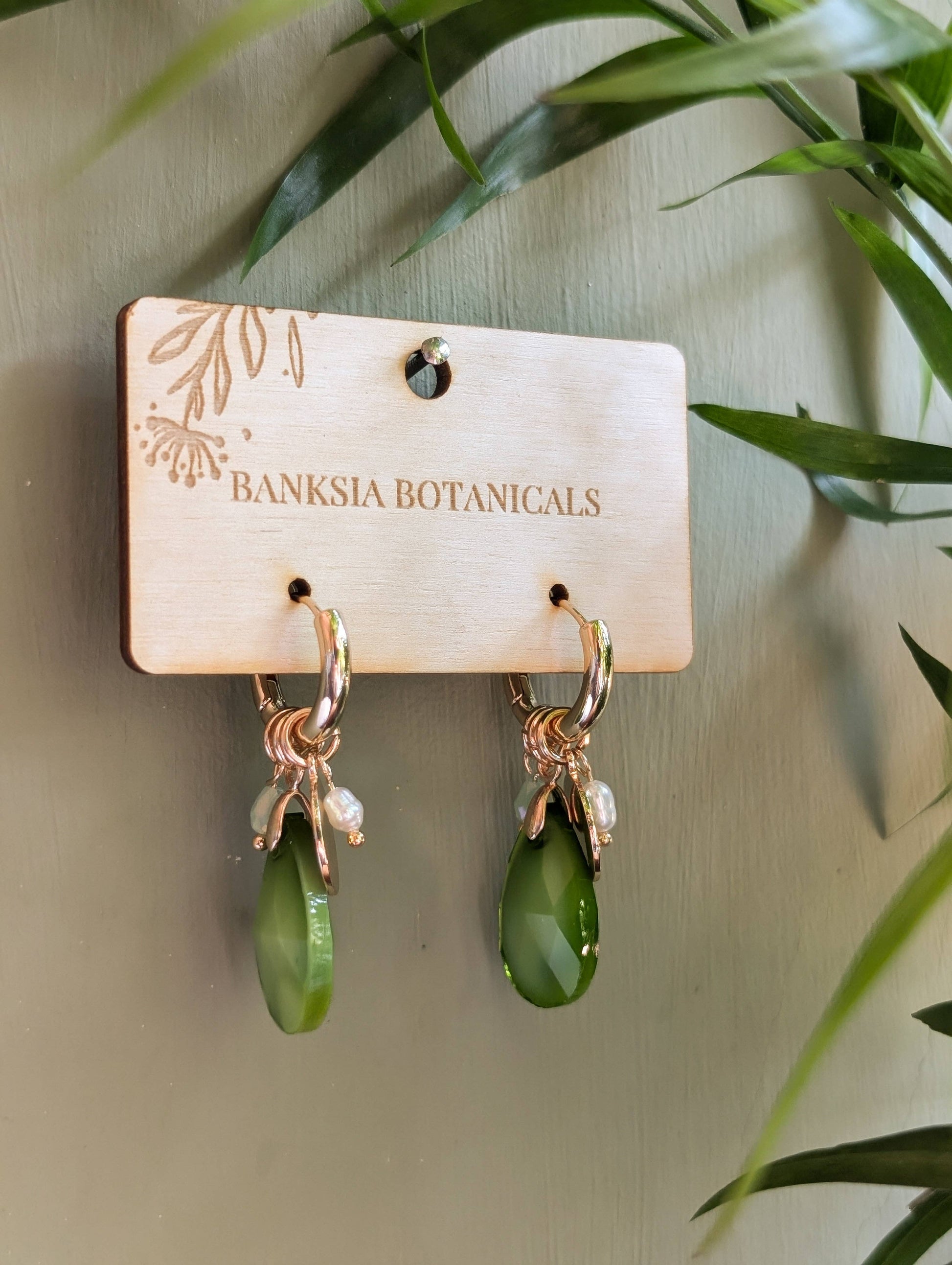Green Charm Huggie Earrings
