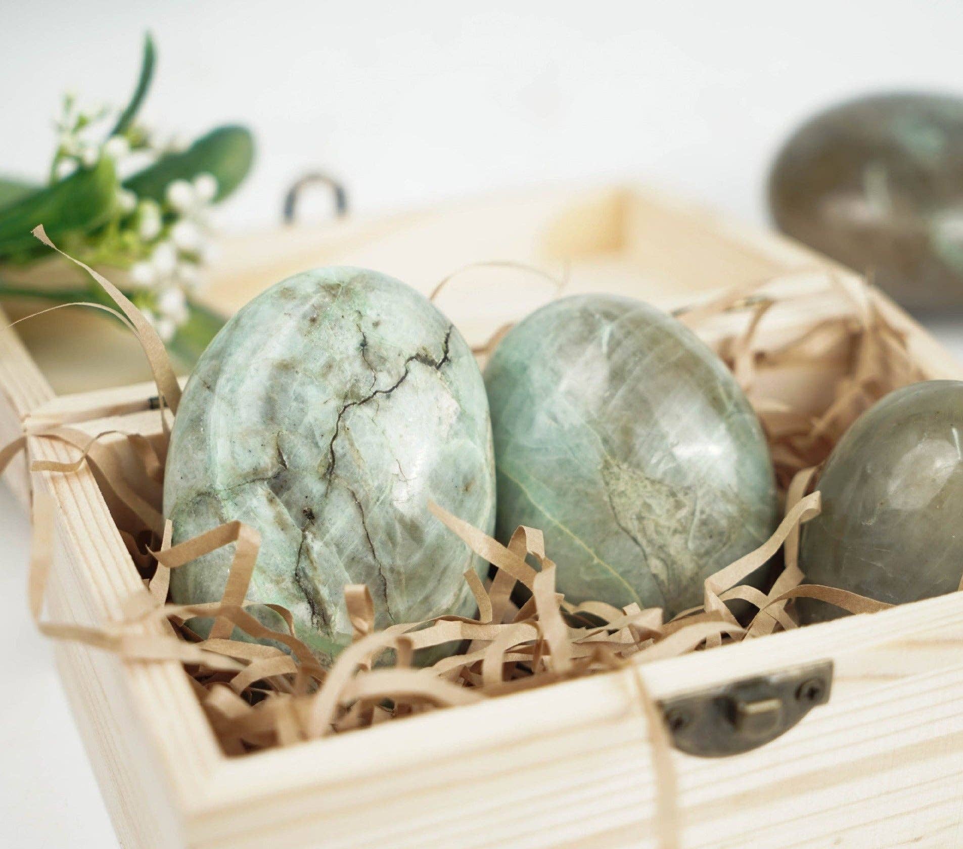 * Due to the natural variations in stone formation, the size, shape, and color of your green moonstone palm stone may vary slightly from the one pictured.