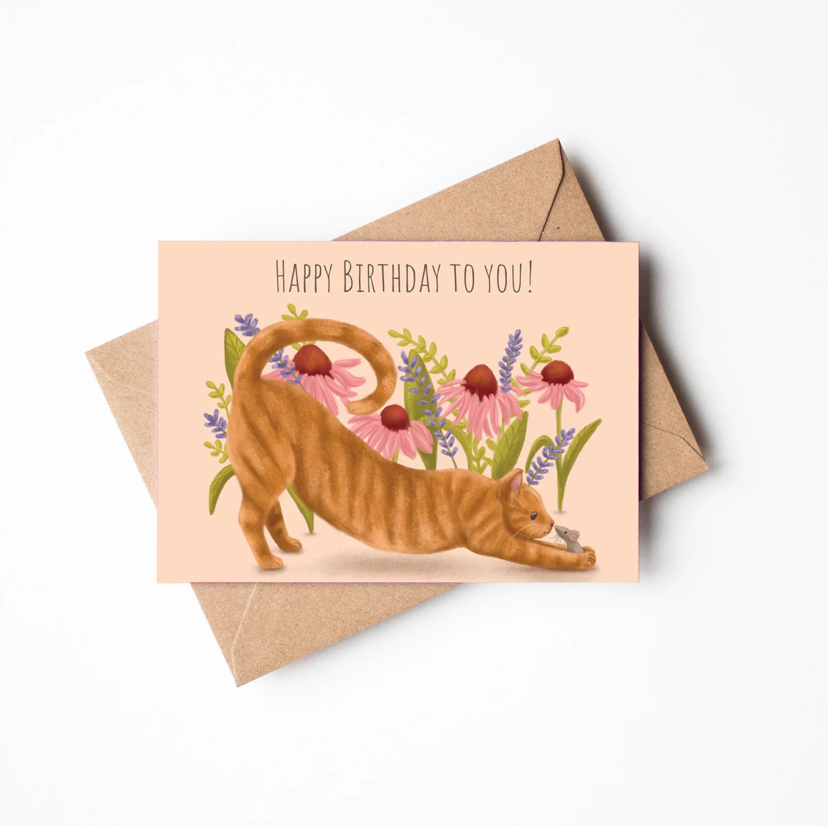 Happy Birthday To You Ginger Cat & Mouse Greetings Card