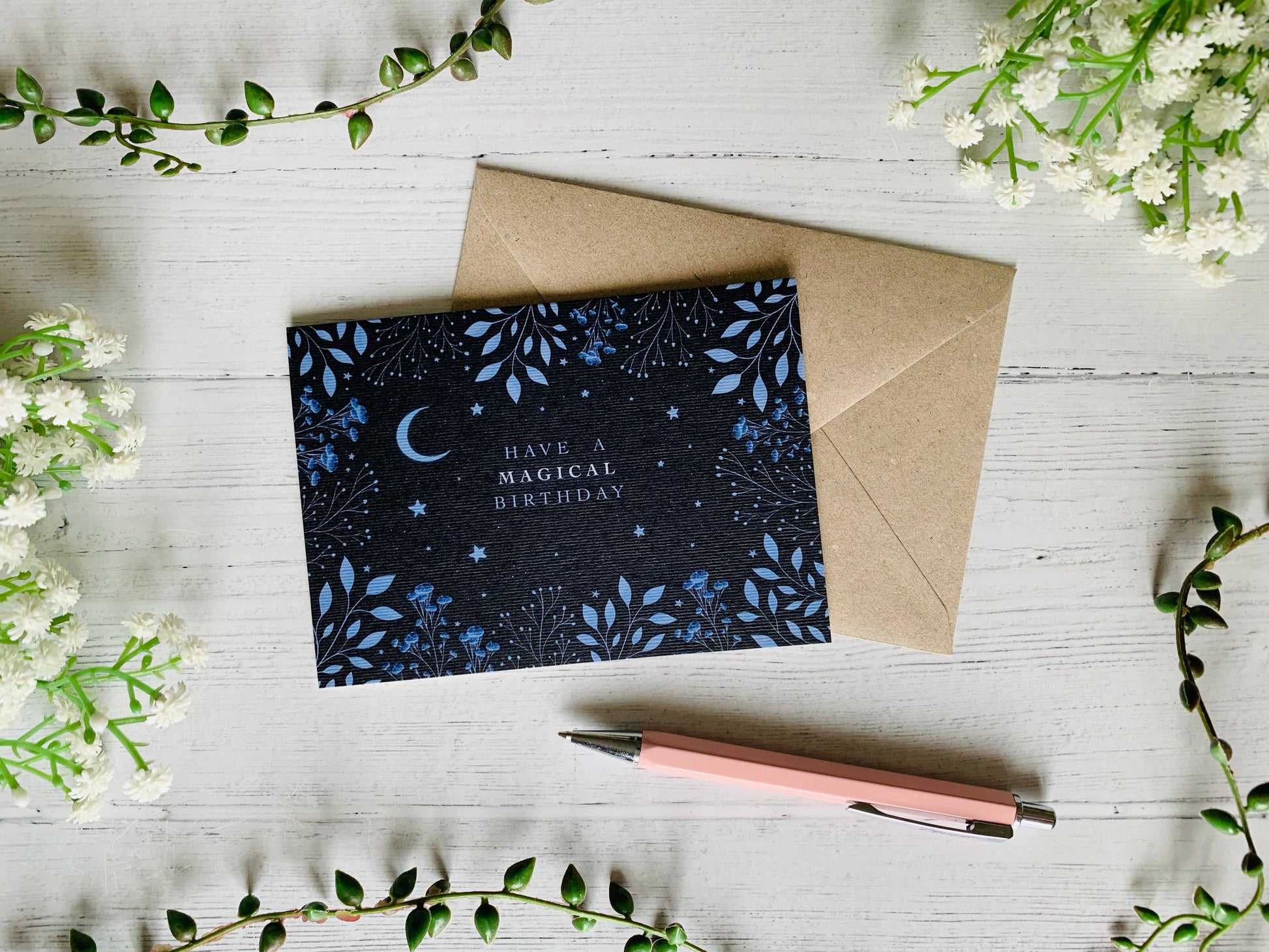 Luxury A6 greeting card, printed in the UK on textured Aquerello paper. Each card comes packaged with a Kraft paper envelope and a compostable cellophane sleeve. Blank inside.