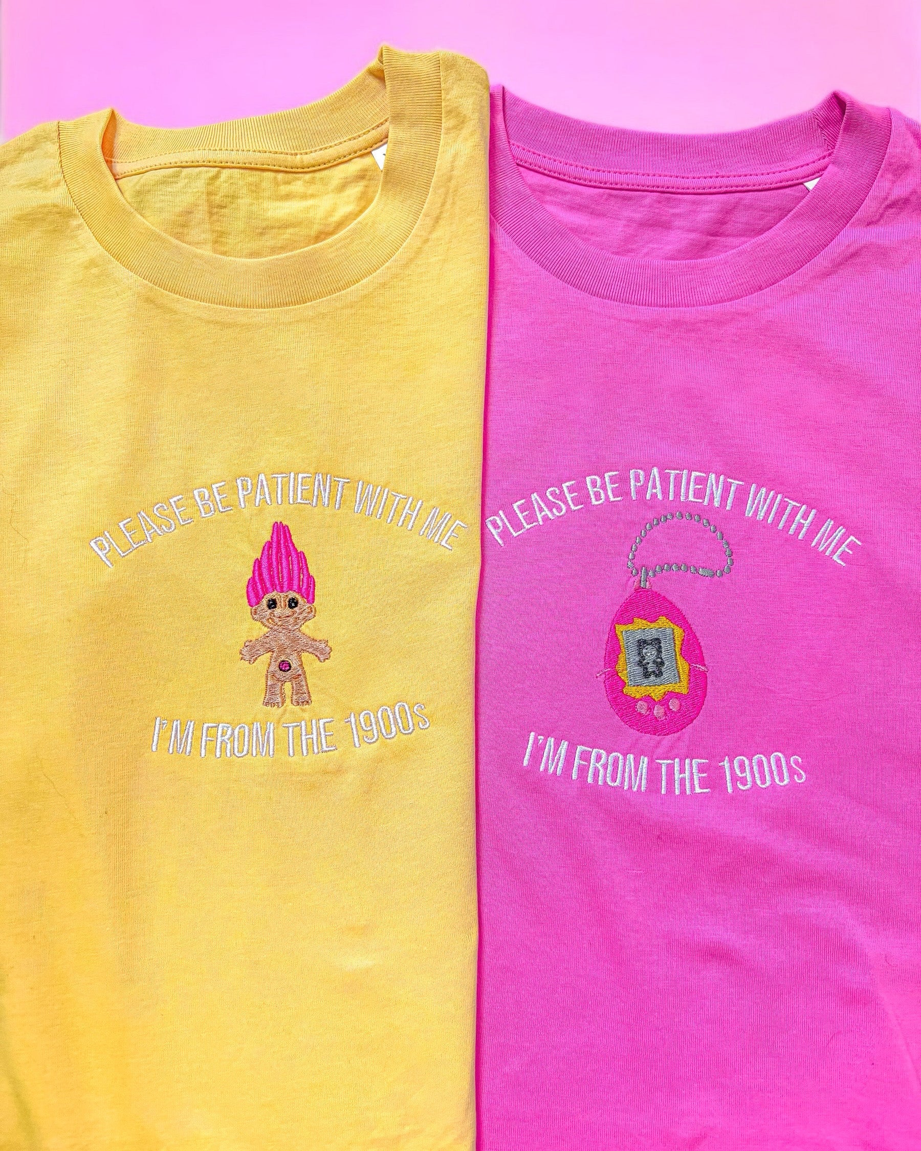 Eye-catching embroidery - “I’m From the 1900s Tamagotchi” stitched with charm and staying power