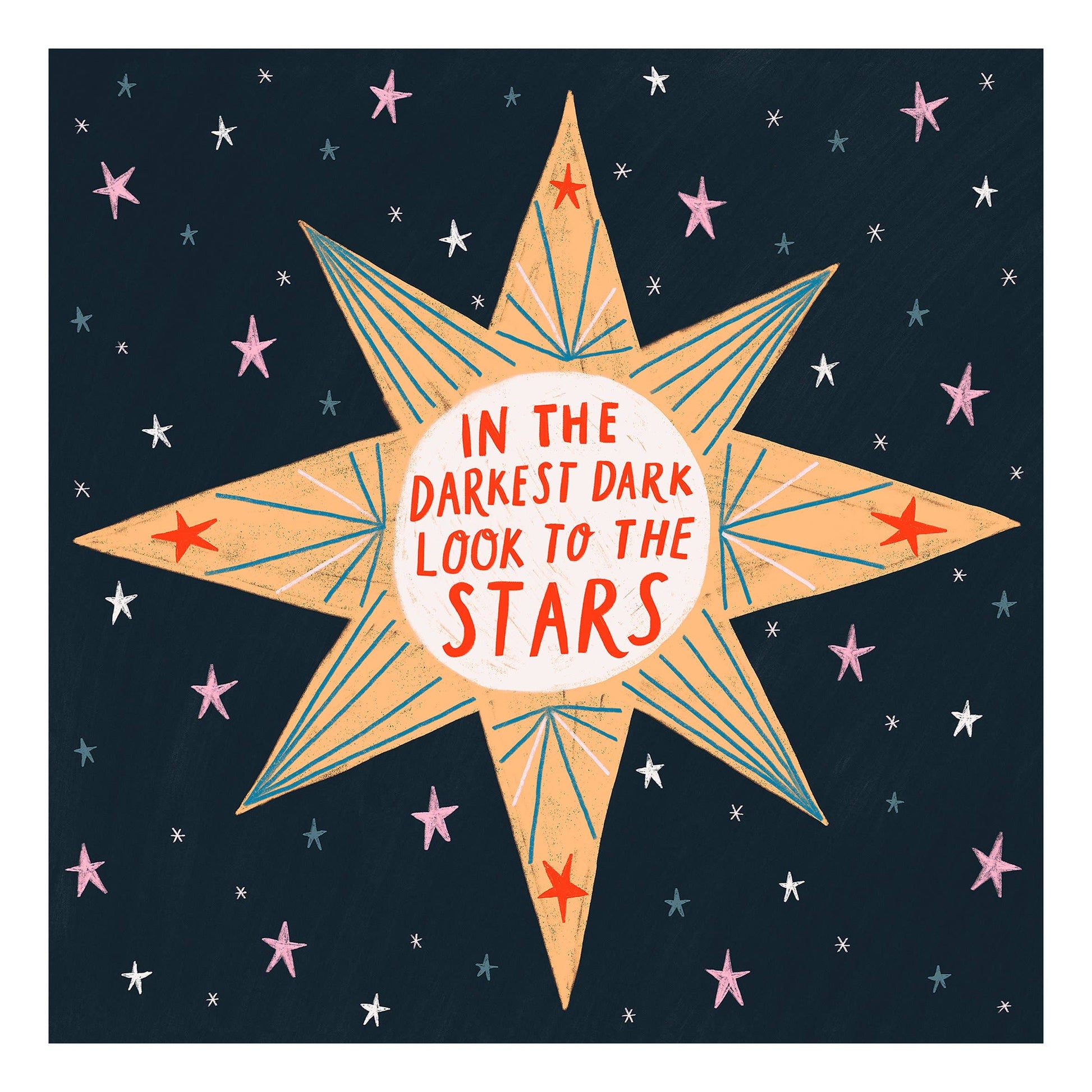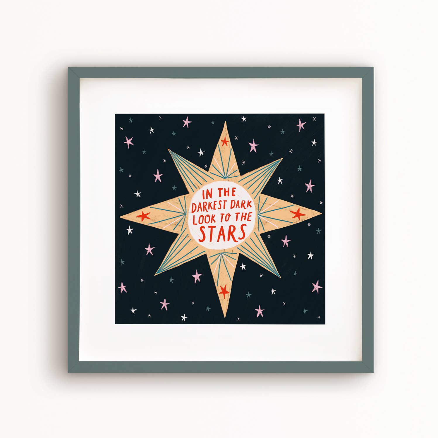 This poster is an original design by Lee Foster-Wilson and features the phrase 'In the Darkest Dark, Look to the Stars' surrounded by little stars and twinkles of hope. It makes a sweet and thoughtful gift for someone who may be going through a tough time or who needs to know that you are there for them. Maybe you are that person and need a reminder on your walls that hope is there and good times will come again.