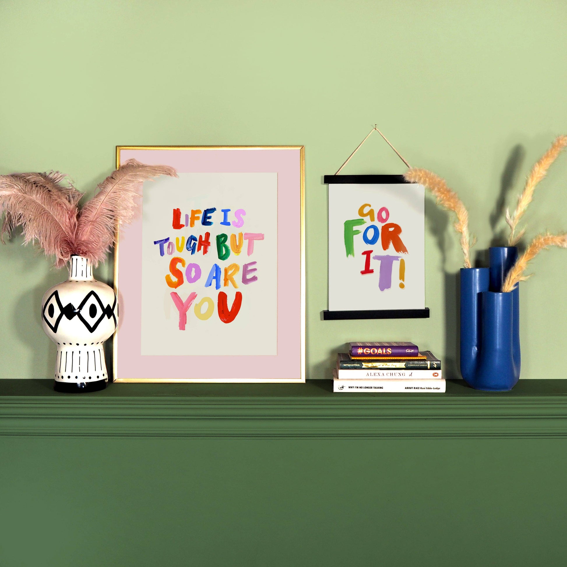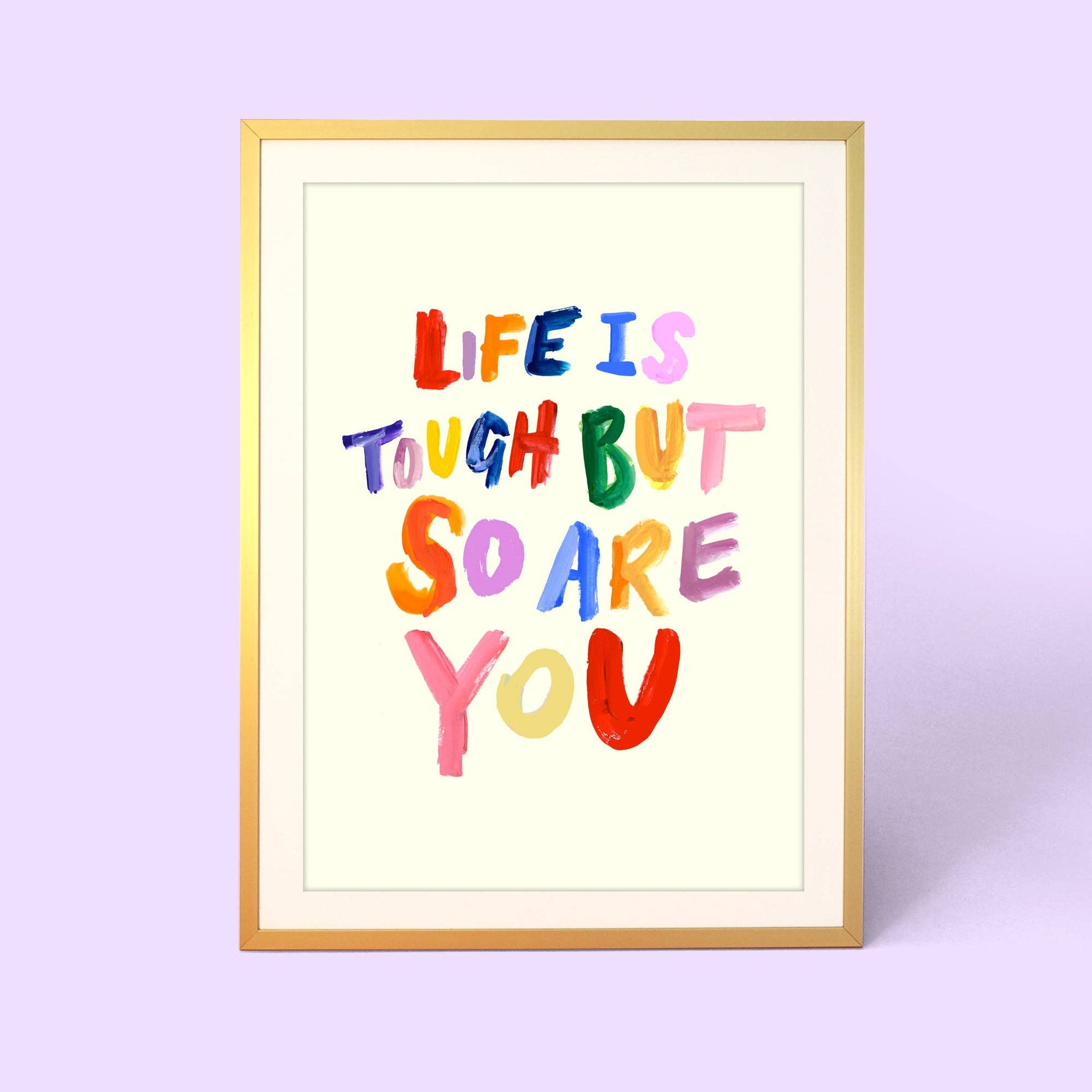 Our 'Life Is Tough But So Are You' print features simple hand painted typography over a cream background. This print would sit perfectly with our 'Good Things Are Coming', 'When In Doubt Dance It Out' and 'Go For It' prints.