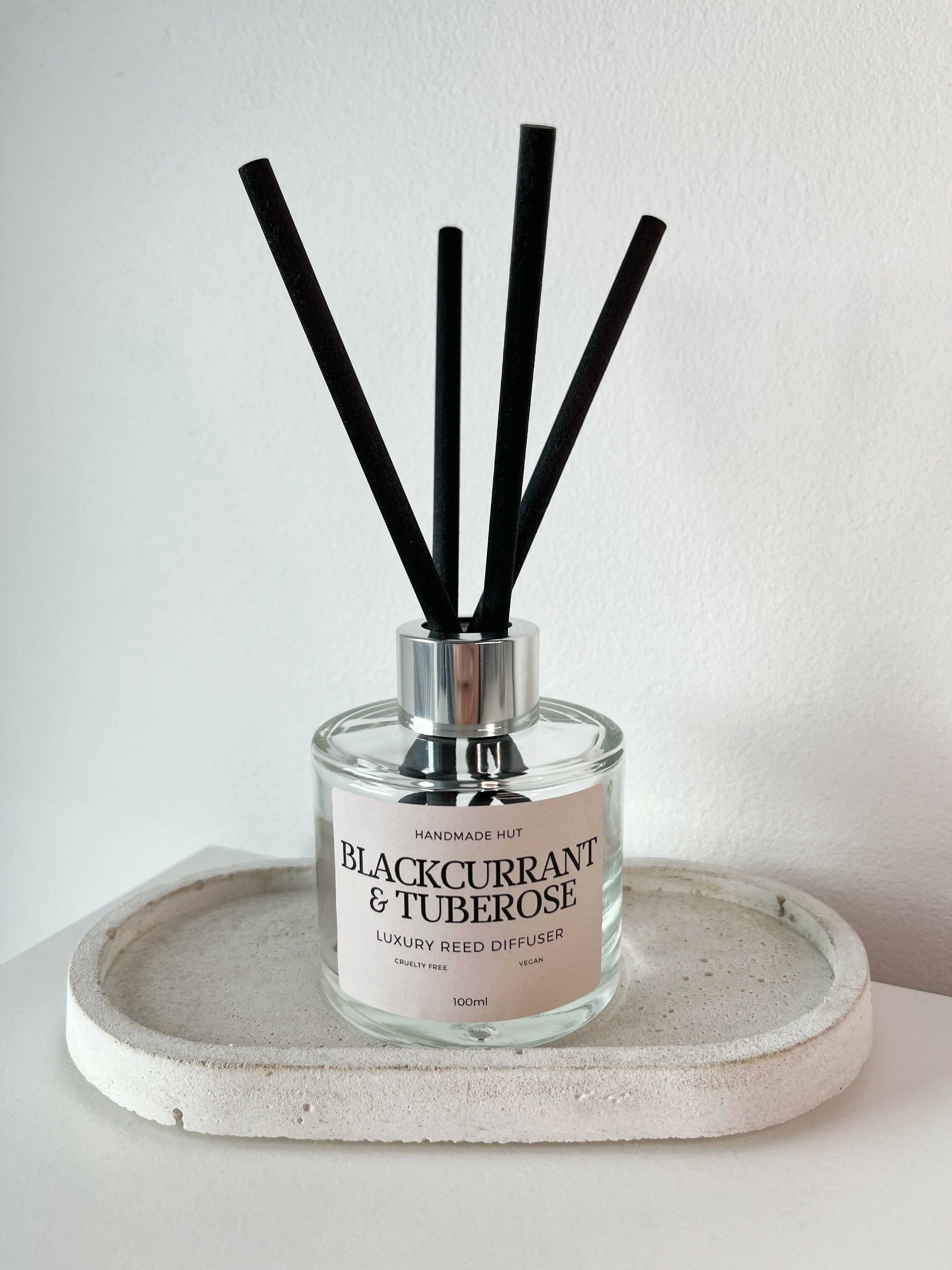 Our luxury diffusers come boxed with our 100ml glass bottle with a silver collar, and come with 4 thick black fibre reeds. They are designed to provide your home with a long lasting scent and are delicately hand poured in small batches to ensure every product is of the best quality.