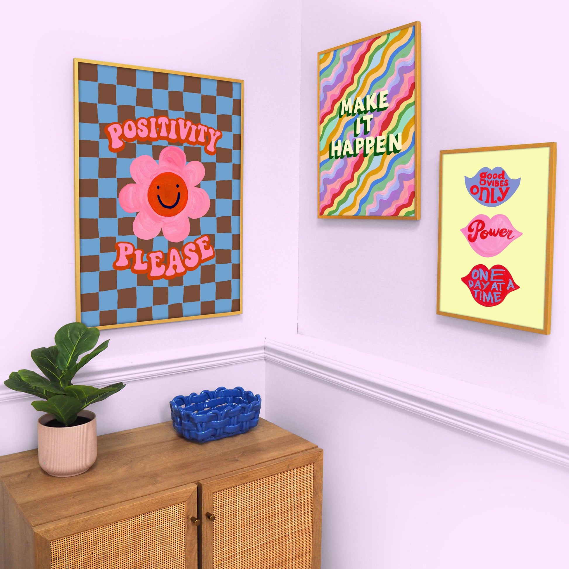 Looking to motivate yourself or a loved one? Our Make It Happen Print features hand painted bold typography that reads ' Make It Happen' over our rainbow wave pattern. Perfect motivational piece of wall art for your home, office, student room or wherever you need some extra motivation!
