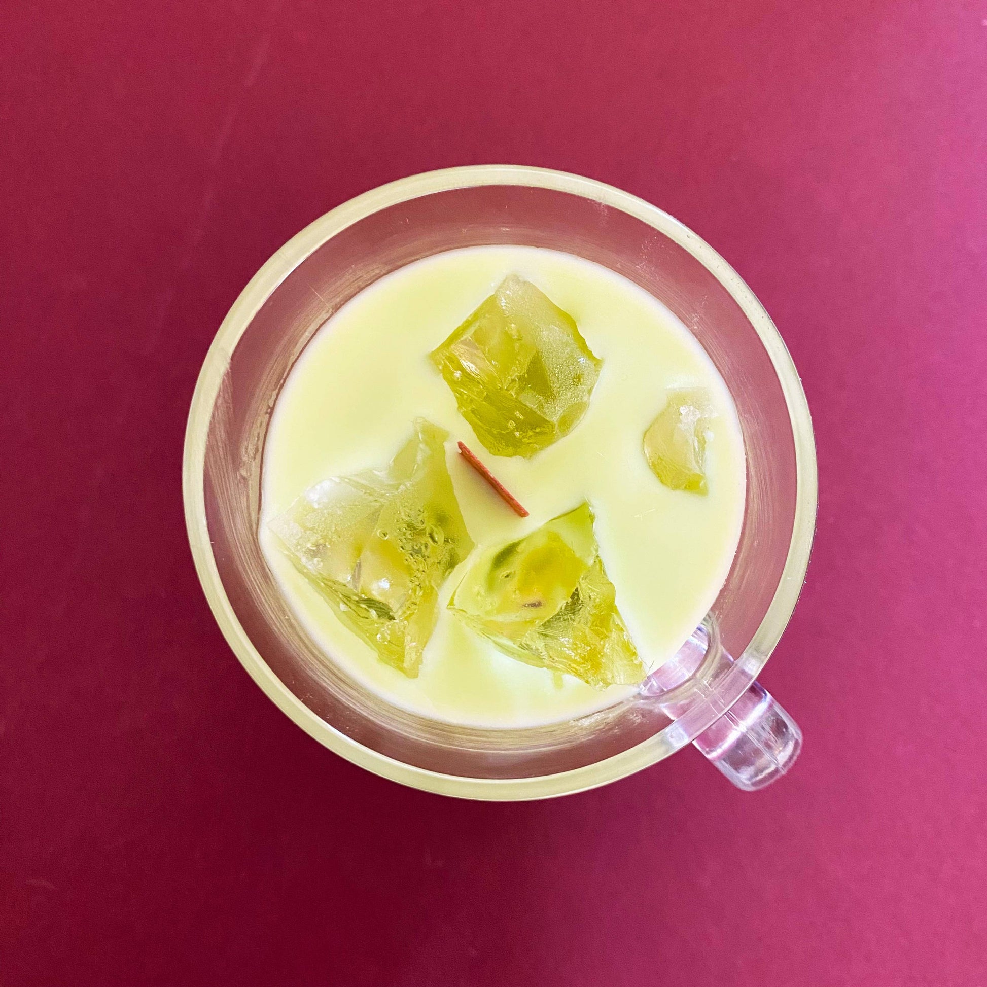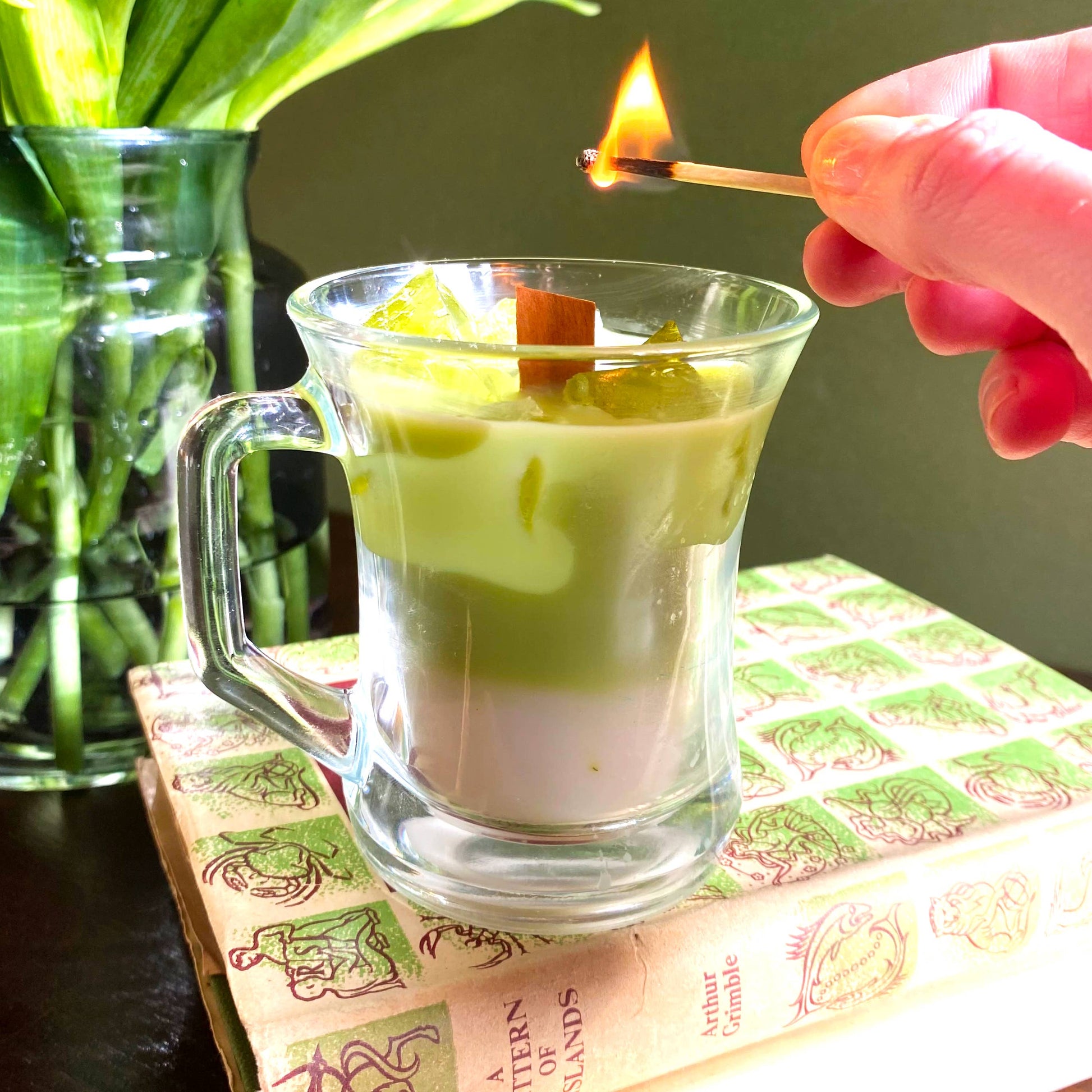 The perfect scented decoration for any home. This matcha candle looks beautiful and is scented to give the aroma of matcha tea.