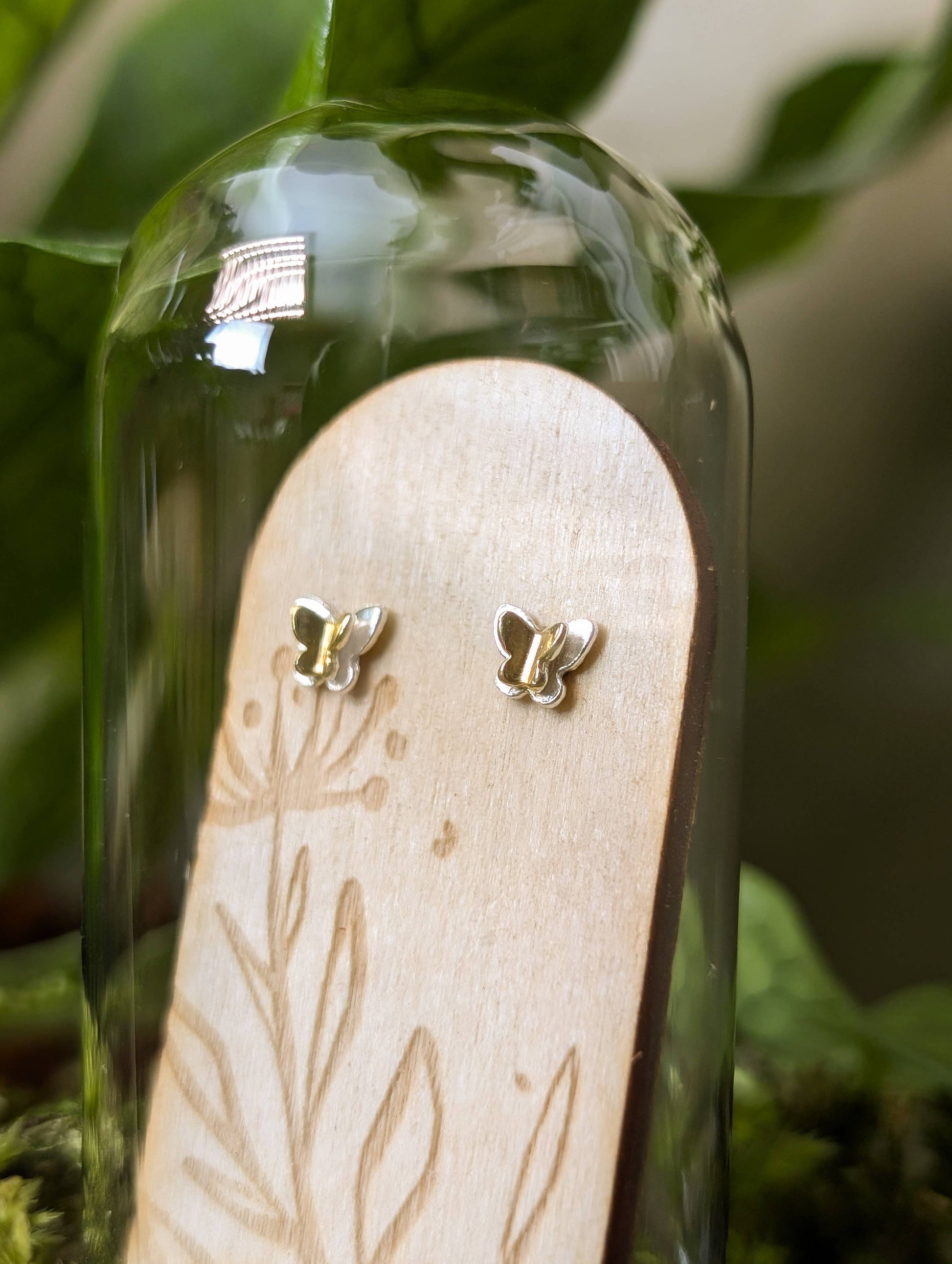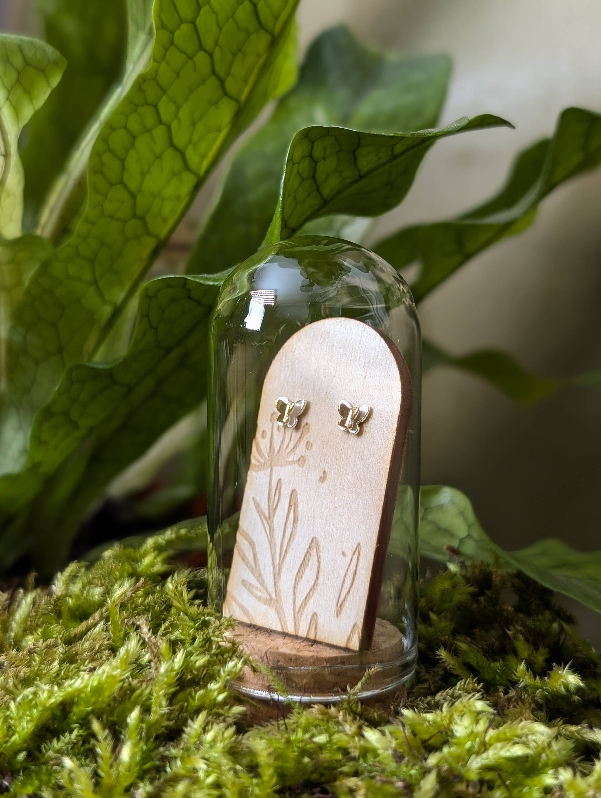 Mini Butterfly Sterling Silver Studs in Glass Terrarium Tube