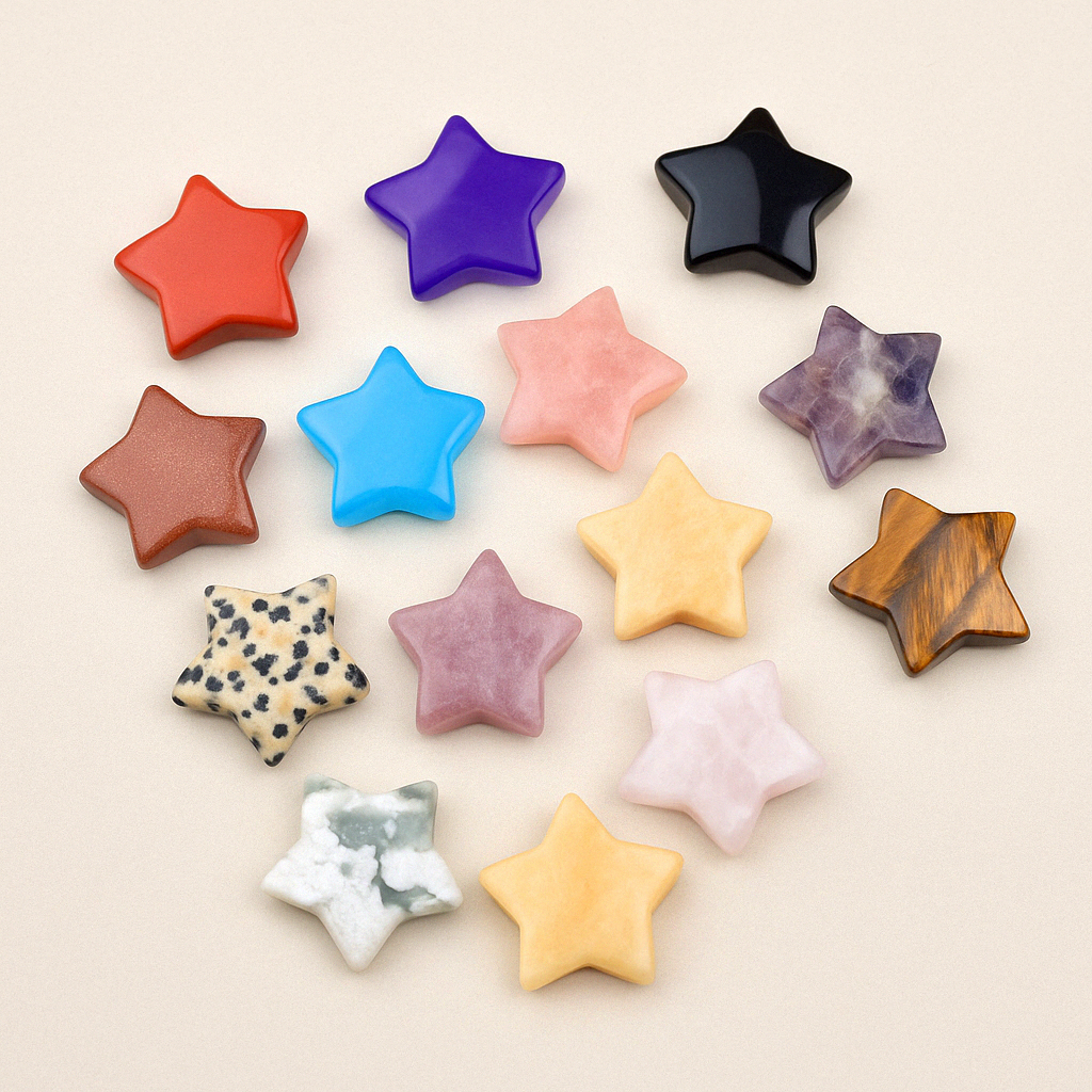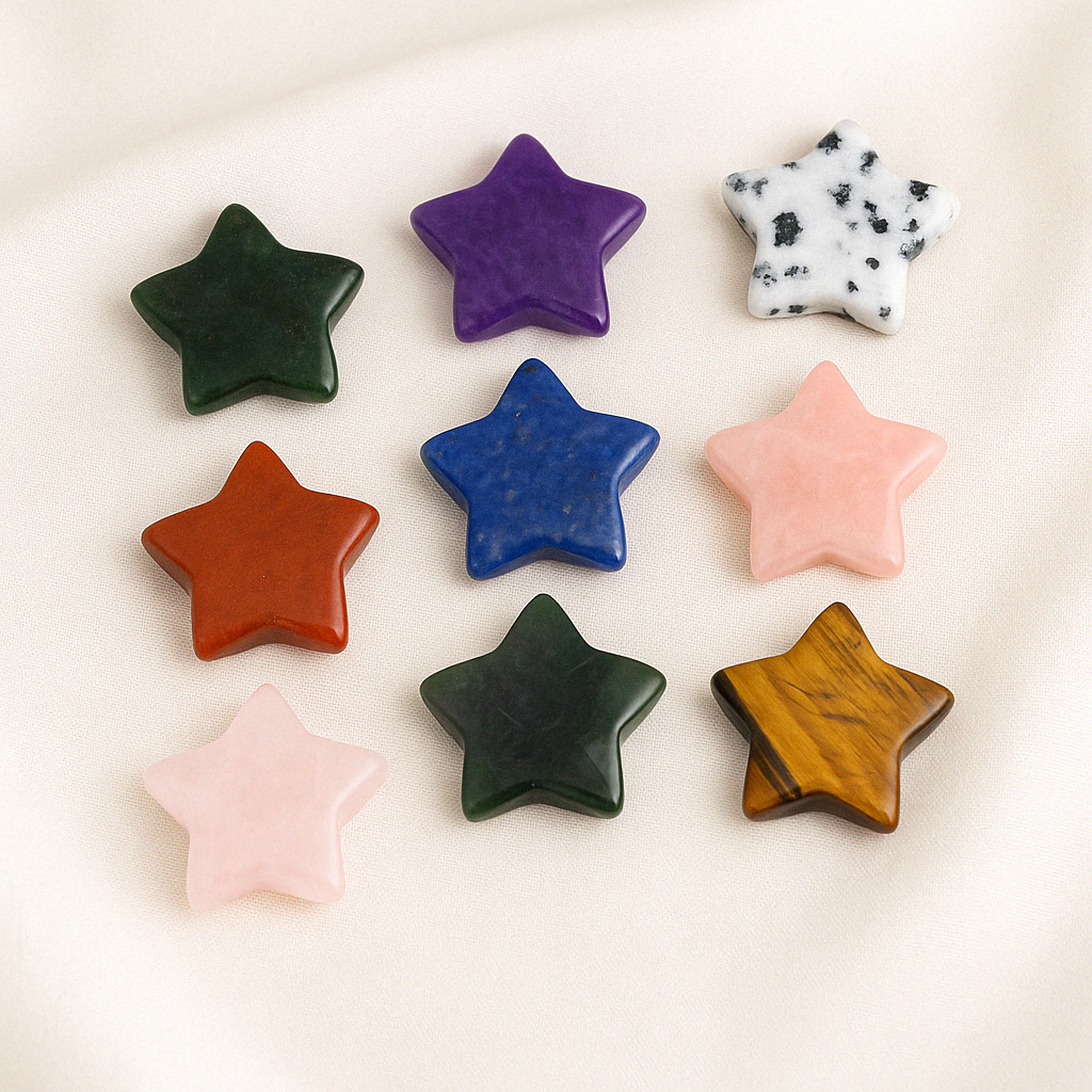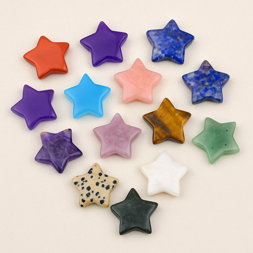 These cute mini crystal stars are hand-carved from a mix of natural stones. You will receive a random stone but please do ask us if you’d like a certain colour or property.