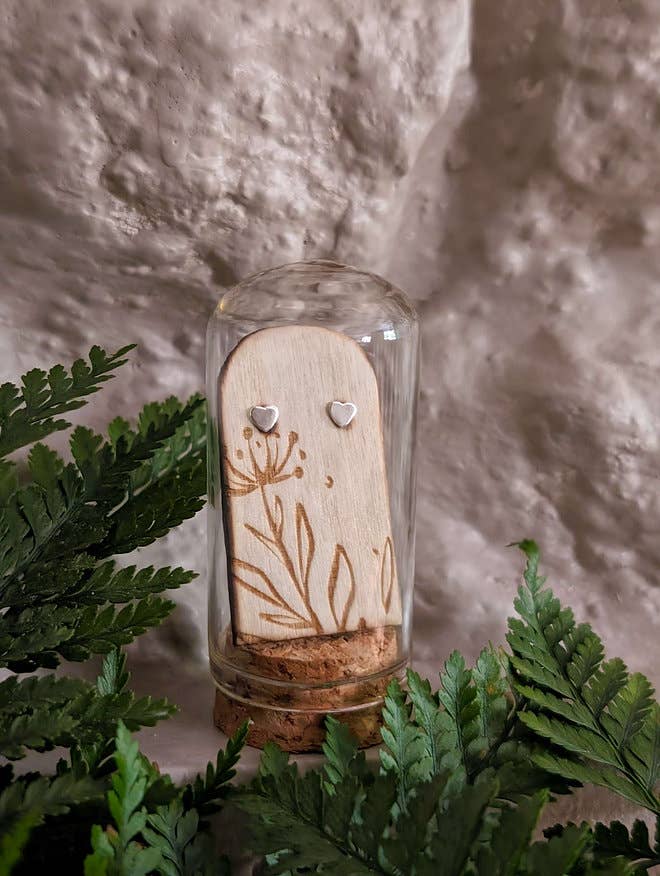Mini Heart Sterling Silver Studs in Glass Terrarium Tube