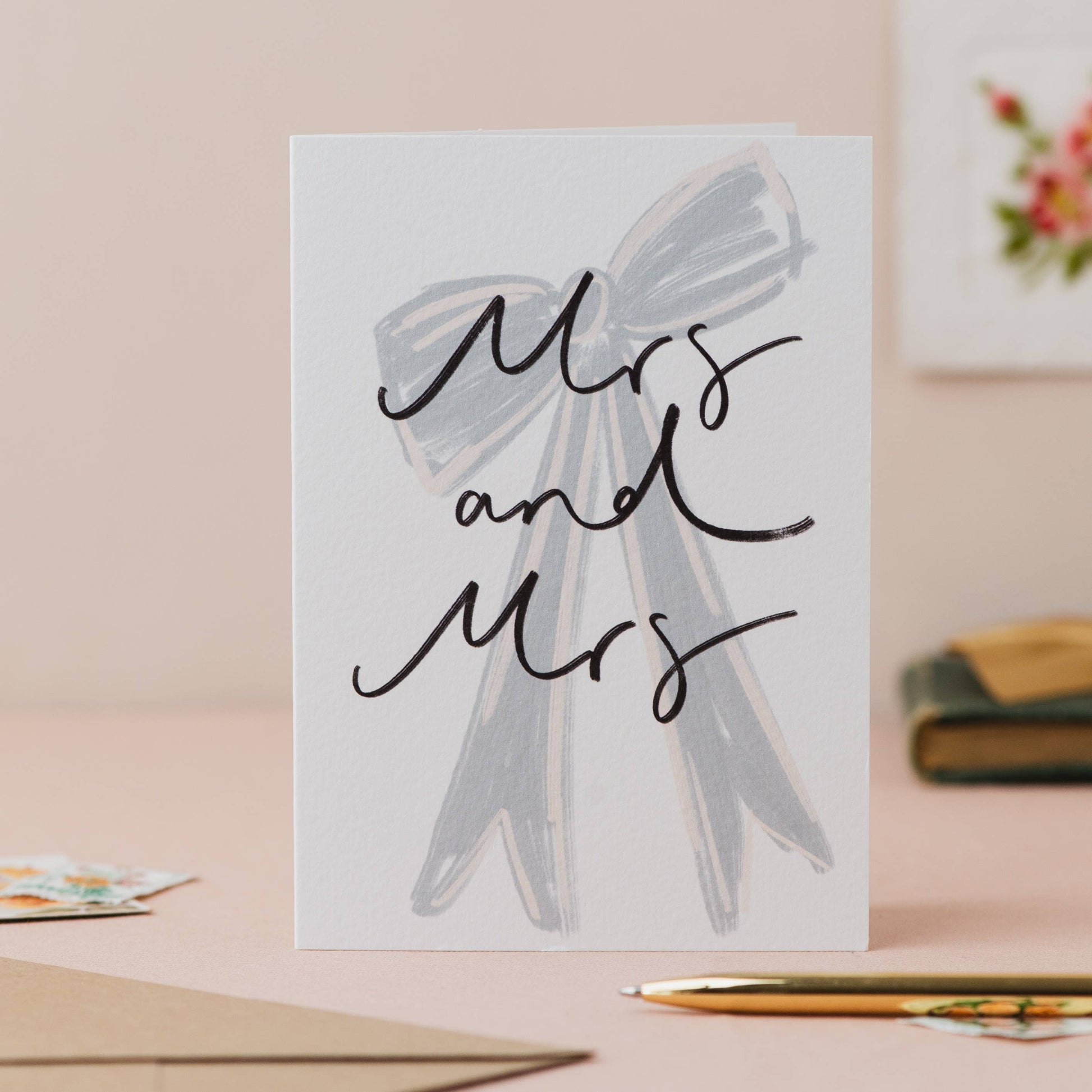 'Mrs and Mrs' Bow Handwriting Wedding Card