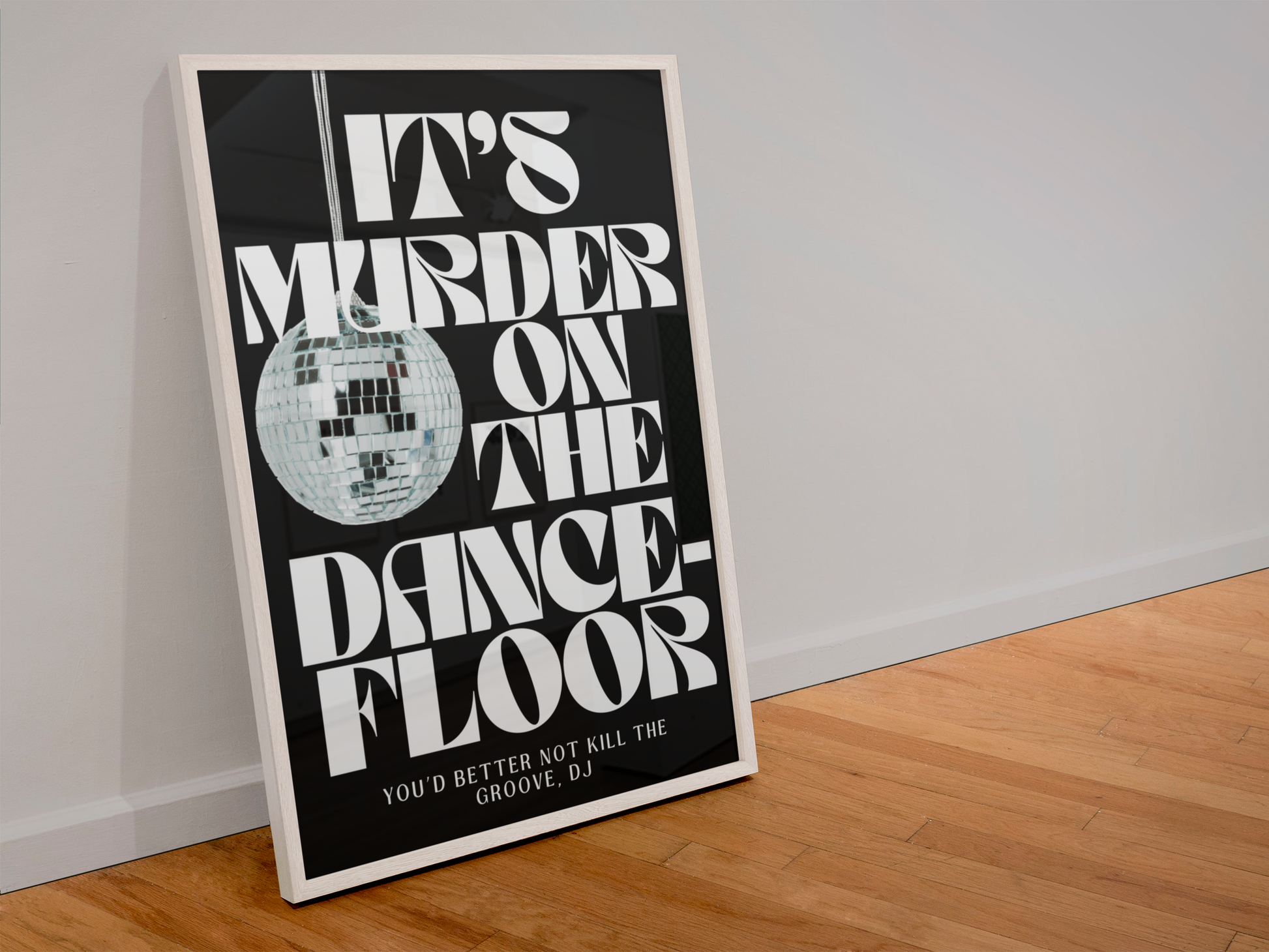 Murder on the dancefloor inspired print. Printed on high quality 230gsm archival art paper. Available in a variety of different sizes: A6 - 105mmx148mm A5 - 148x210mm | approx 6x8" A4 - 210x297mm | approx 8x12" A3 - 297x420mm | approx 12x16.5" A2 - 420x297mm | approx16.5x23” 6 x 4 5 x 7 10 x 8 We can also provide a framing service (so prints arrived to you with frames) so please message us if you are interested in this. Note: Print comes unframed and is photographed on the product page for styling purposes.