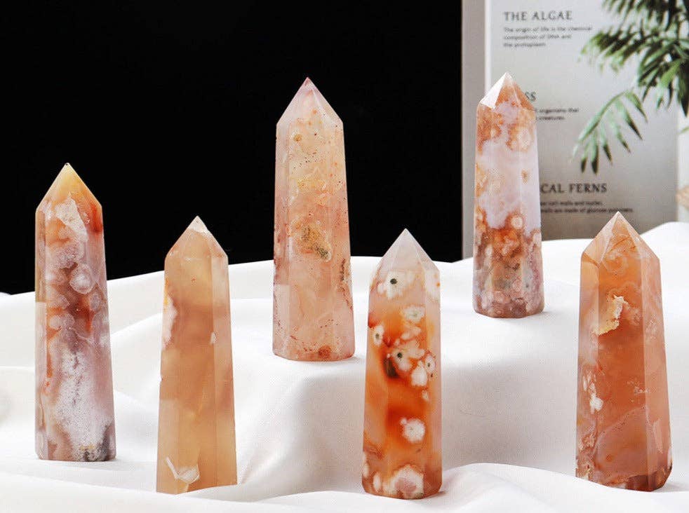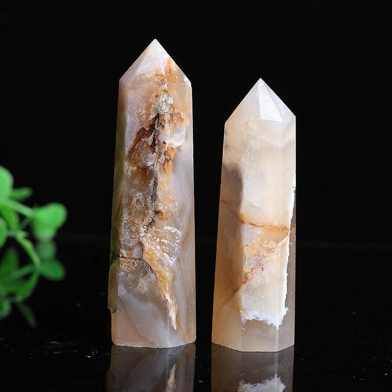 The Flower Agate Tower is a stunning crystal tower that bridges the gap between emotions and reality. This unique crystal is named for its delicate pink and white flower-like patterns, and its energy is perfect for those who want to connect with their emotions and ground them in reality. It can help you release old emotional patterns and embrace new opportunities for growth.
