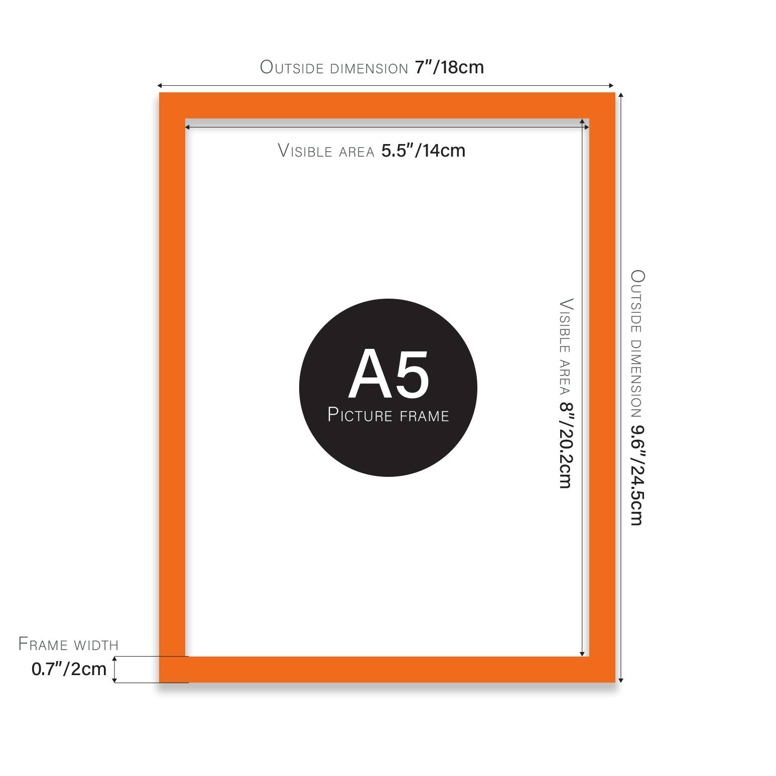 Featuring a thin 20mm edge, our lightweight frames come with versatile wall hooks, allowing for easy hanging in both portrait and landscape orientations. Additionally, a kickstands are included on frames up to 14” and in A6, A5, A4