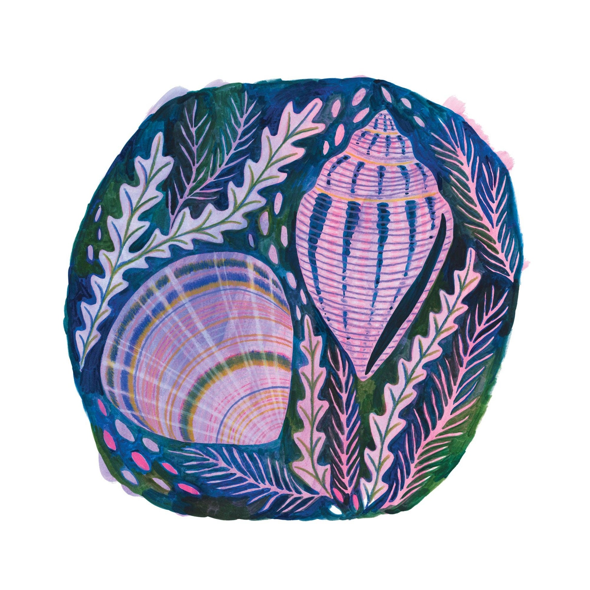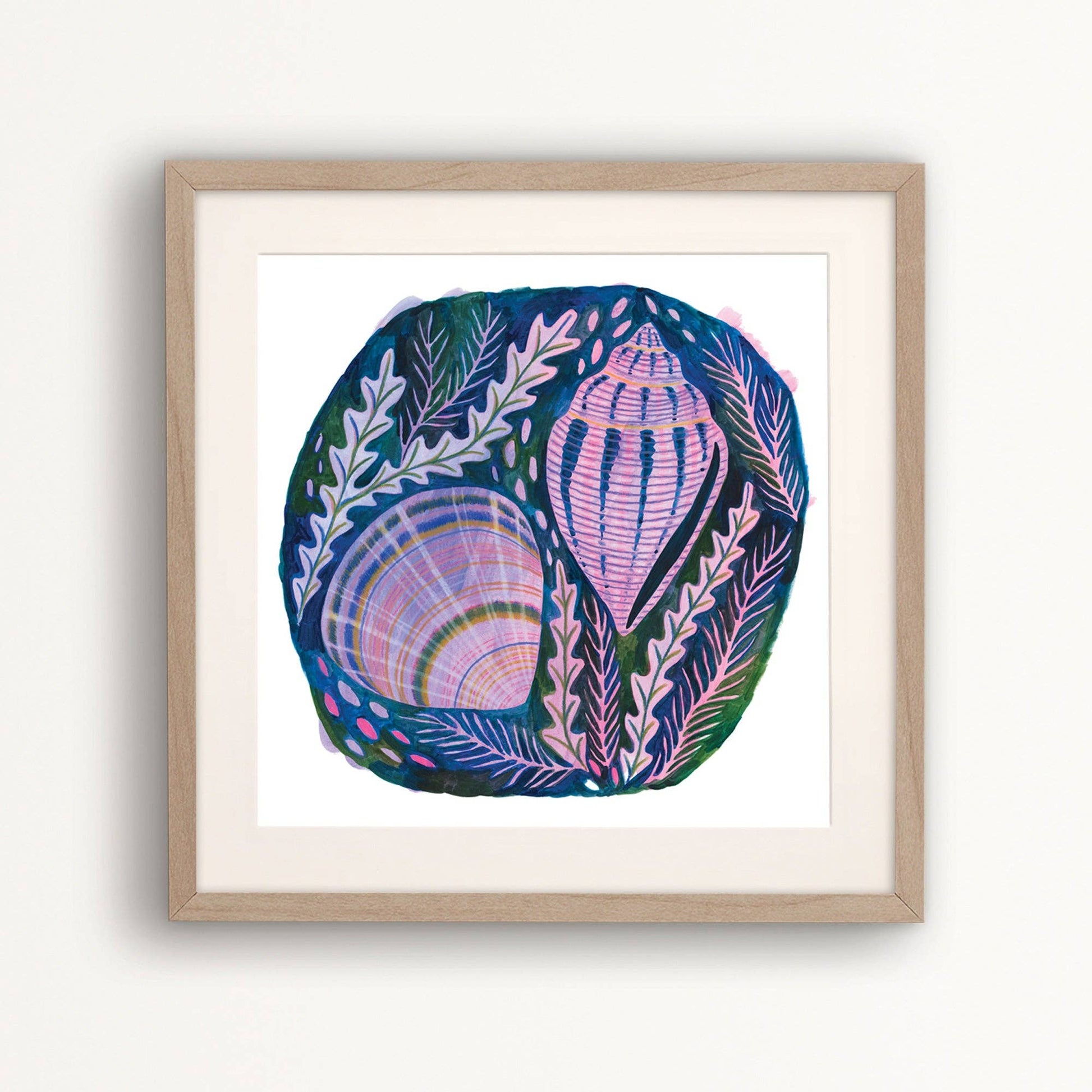 My original rock pools are part of a series of paintings which explore the coastline close to where I live in Cornwall. Each painting is an invitation into the underwater world of the shapes and creatures that live there, which I have drawn from life and imagination. Rock Pool 1 is a reproduction of the original art which was painted and drawn in mixed media on paper. Digitally printed onto thick 350gsm matte paper and packaged flat with a backing card in a bio cello bag for display. PLEASE NOTE: Frames not included! Prints are packaged with sturdy backing card in biodegradable cello bags for easy display. Measurements: The print comes in a range of standard A sizes for easy framing: Small (14.8cm square) Medium (21cm square) Large (29.7 square)