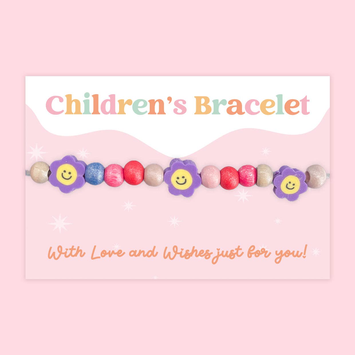 Smiling Flower Charm WishStrings Children’s Beaded Stretch Bracelet on Illustrated Gift Card | Positivity & Friendship Gift Product Occasion: * • Thoughtful Gift * • Positivity Gift * • Friendship Gift * • Birthday Gift * • Children’s Gift * • Summer Gift * • Best Friend Gift * • Celebration Gift * • Just Because Gift ♥ Smiling Flower Charms: Features adorable flower-shaped charms with happy smiling faces, spreading joy and positivity wherever they go.