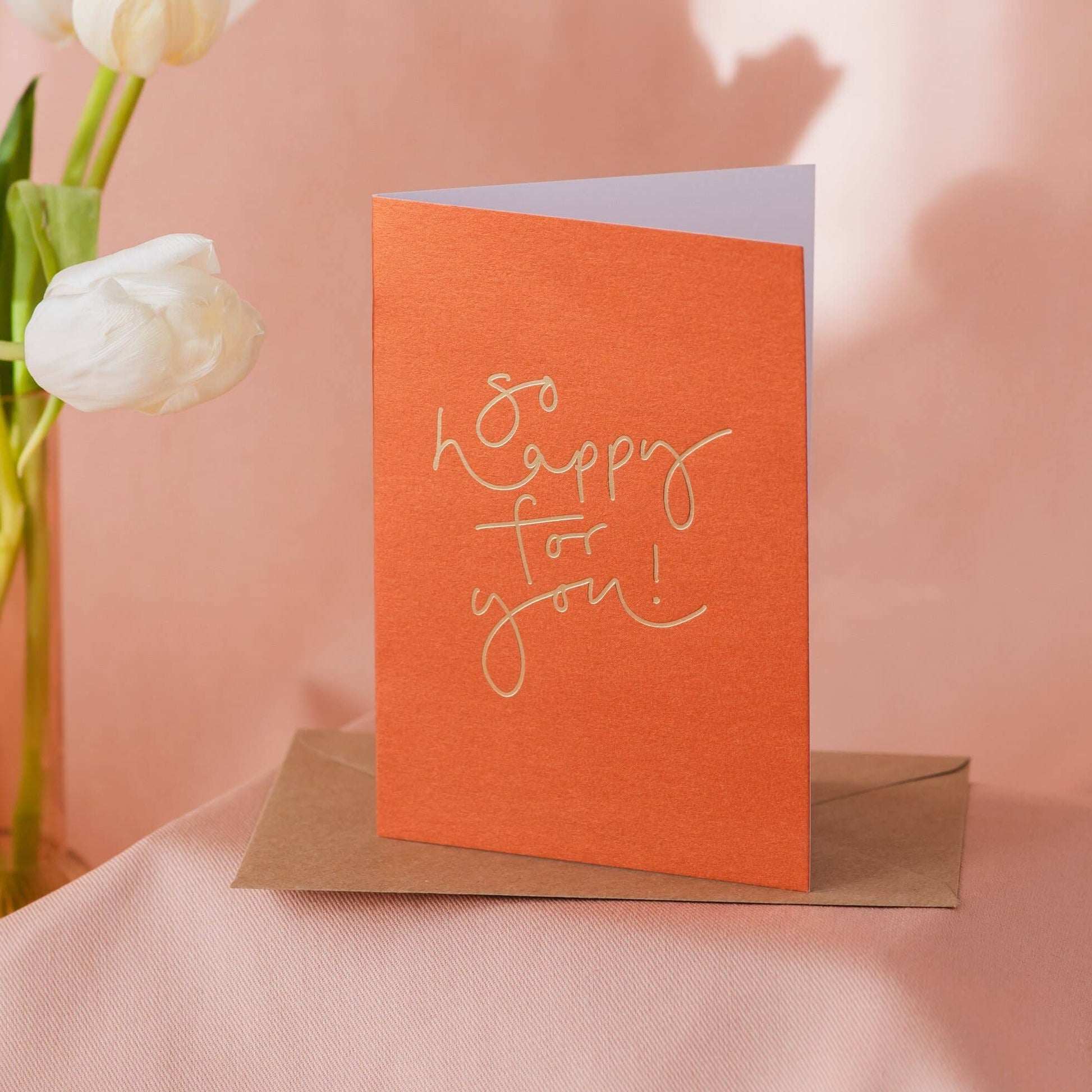 'So Happy For You’ Metallic Orange + Gold Foil Card