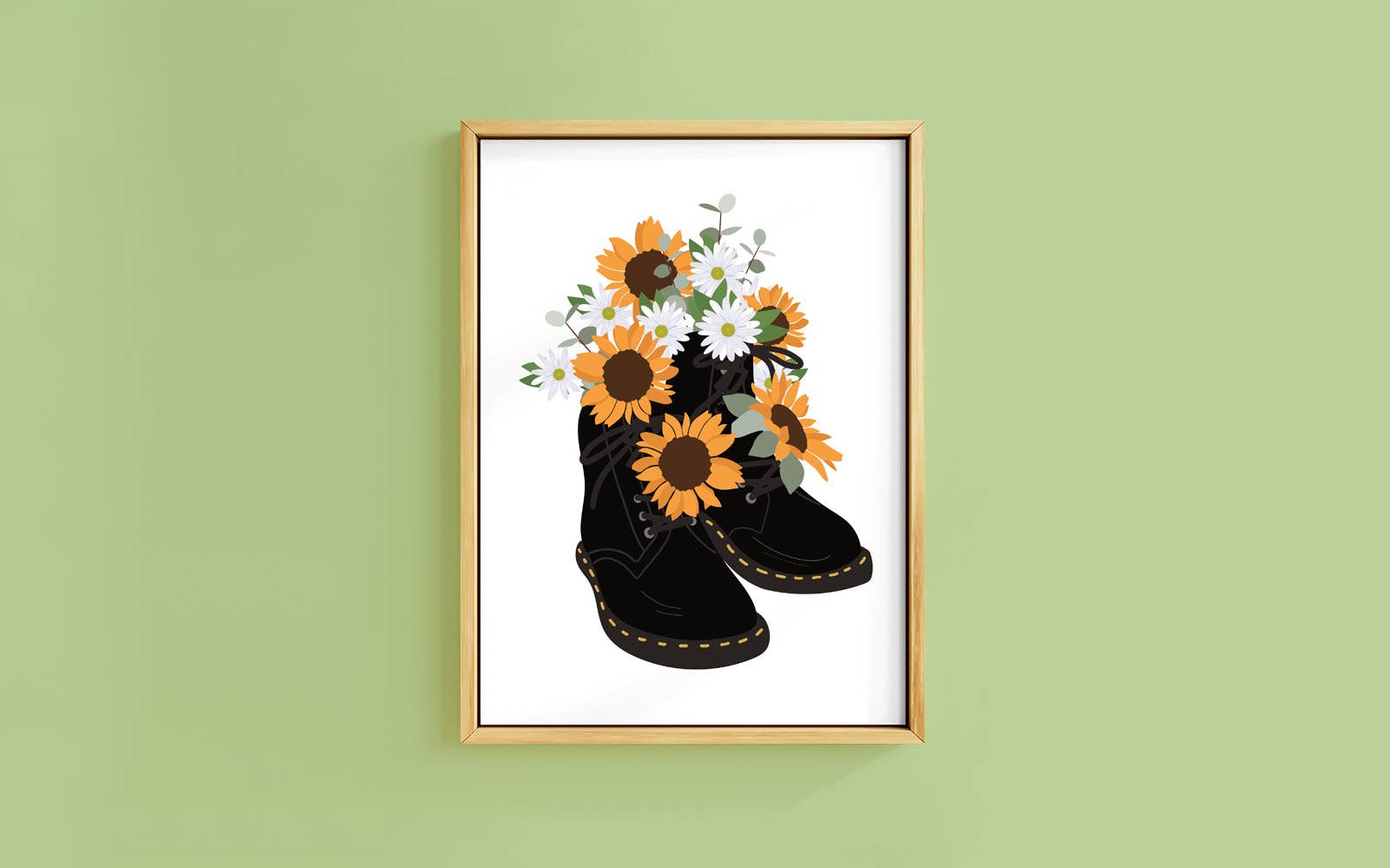 SUNFLOWER BOOTS WHITE ART PRINT: A4