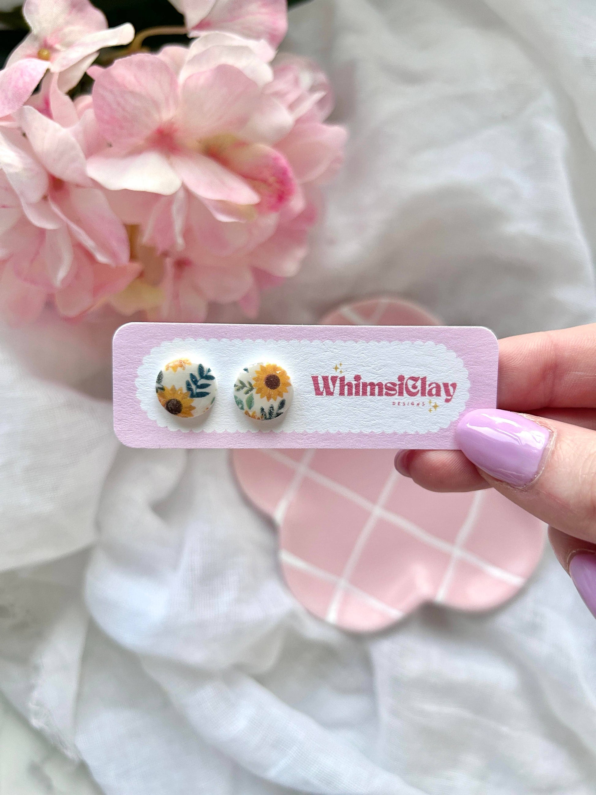 Sunflower stud earrings made with polymer clay and so cute and light to wear!