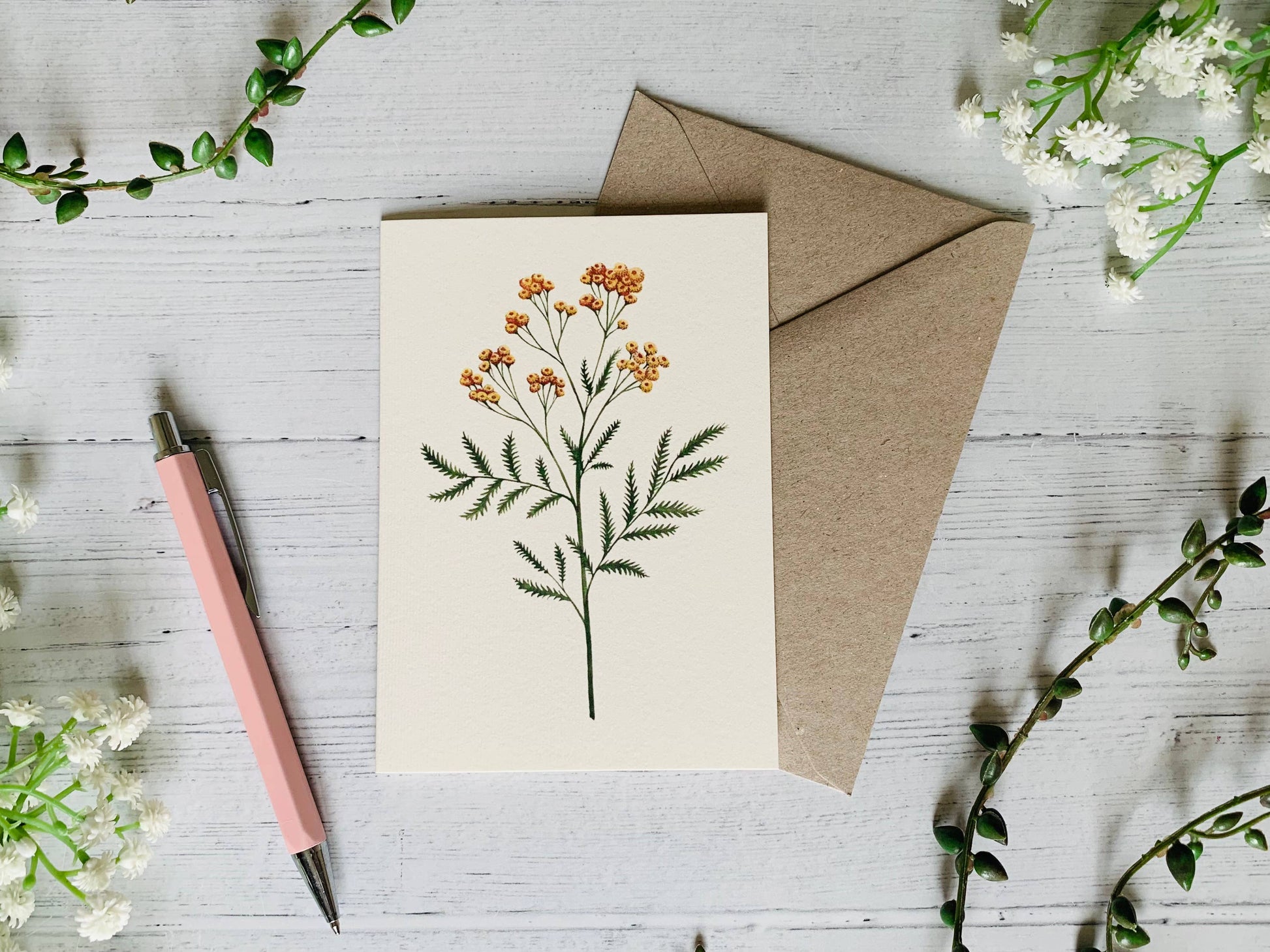 Luxury A6 greeting card, printed in the UK on textured Aquerello paper. Each card comes packaged with a Kraft paper envelope and a compostable cellophane sleeve. Blank inside.