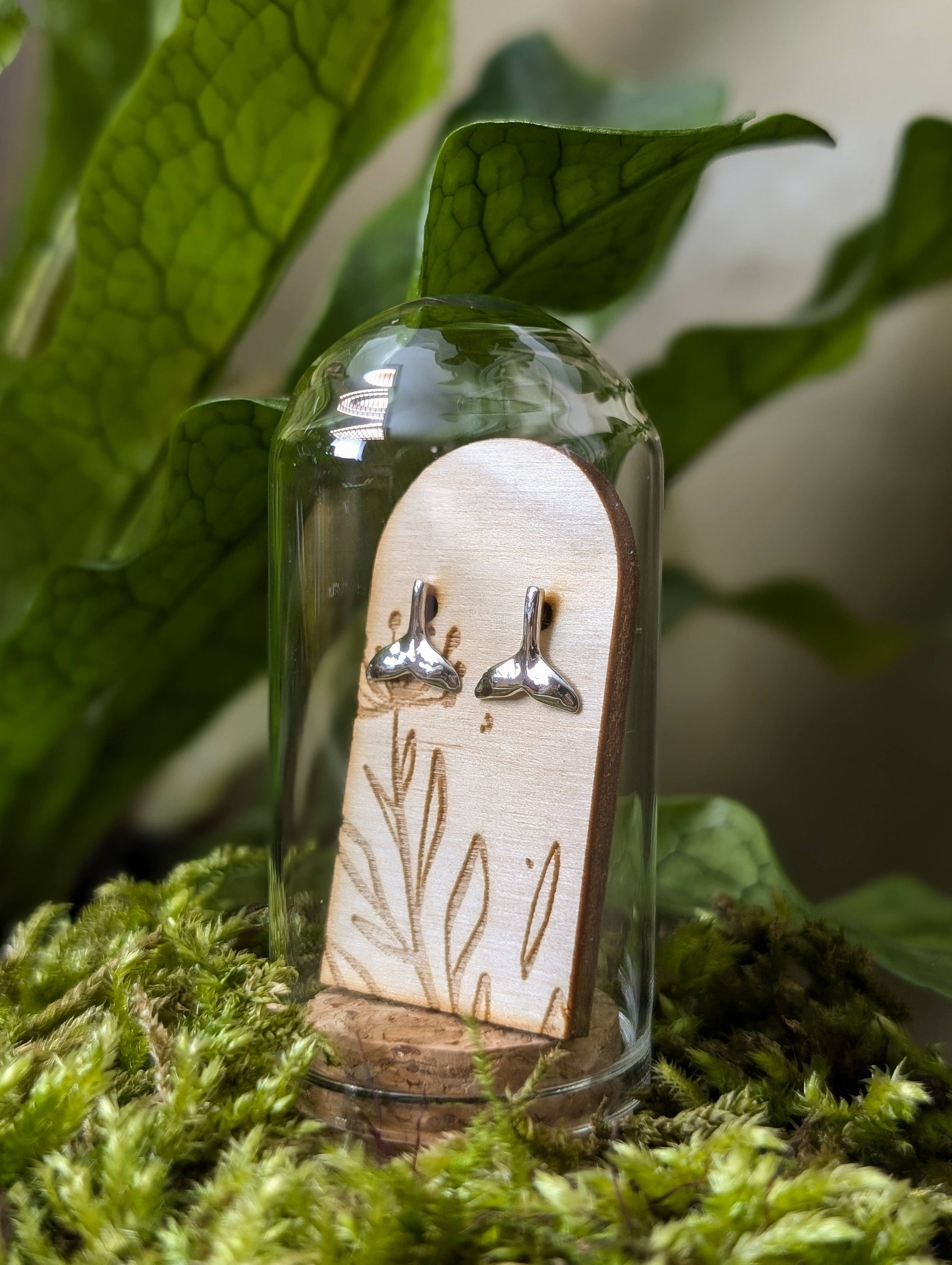 Whale Tail Sterling Silver Studs in Glass Terrarium Tube